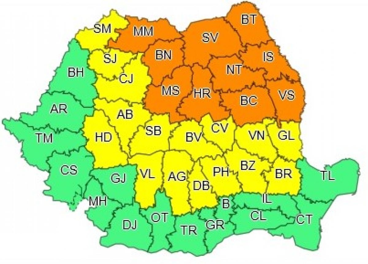 În intervalul menționat, în județele Maramureș, Bistrița-Năsăud, Mureș, Harghita, Suceava, Neamț, Bacău, Botoșani, Iași și Vaslui vor fi perioade cu instabilitate atmosferică deosebit de accentuată.