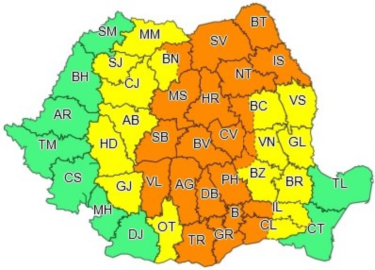 Administrația Națională de Meteorologie a emis noi avertizări pentru aproape toată țara.