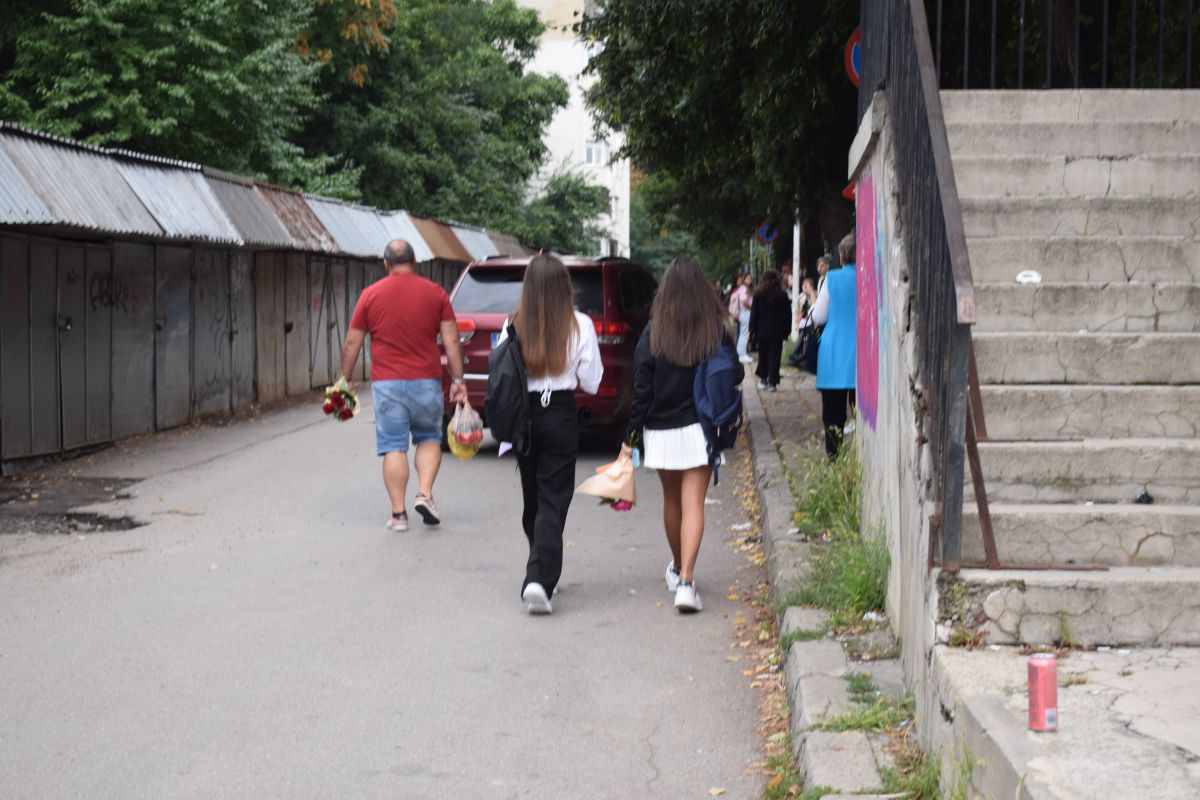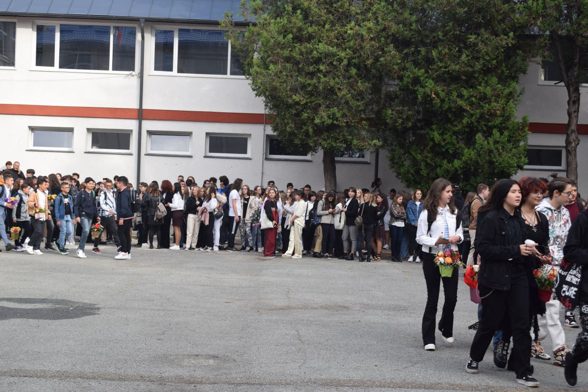 Sute de elevi au luat parte la festivitatea de deschidere. S-au bucurat de întâlnirea cu colegii, au dăruit flori profesorilor, au făcut poze, dar și-au etalat și ținutele în prima zi de școală.