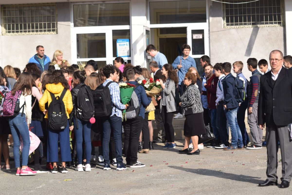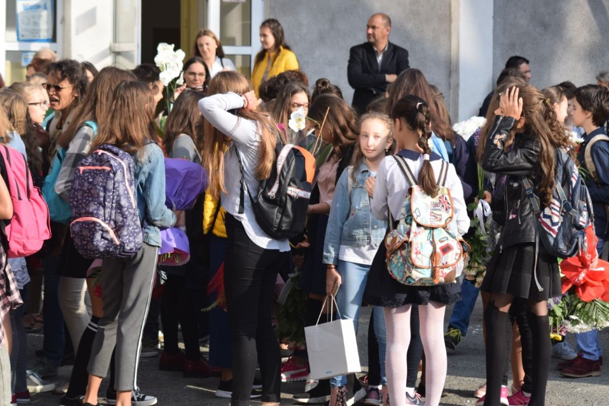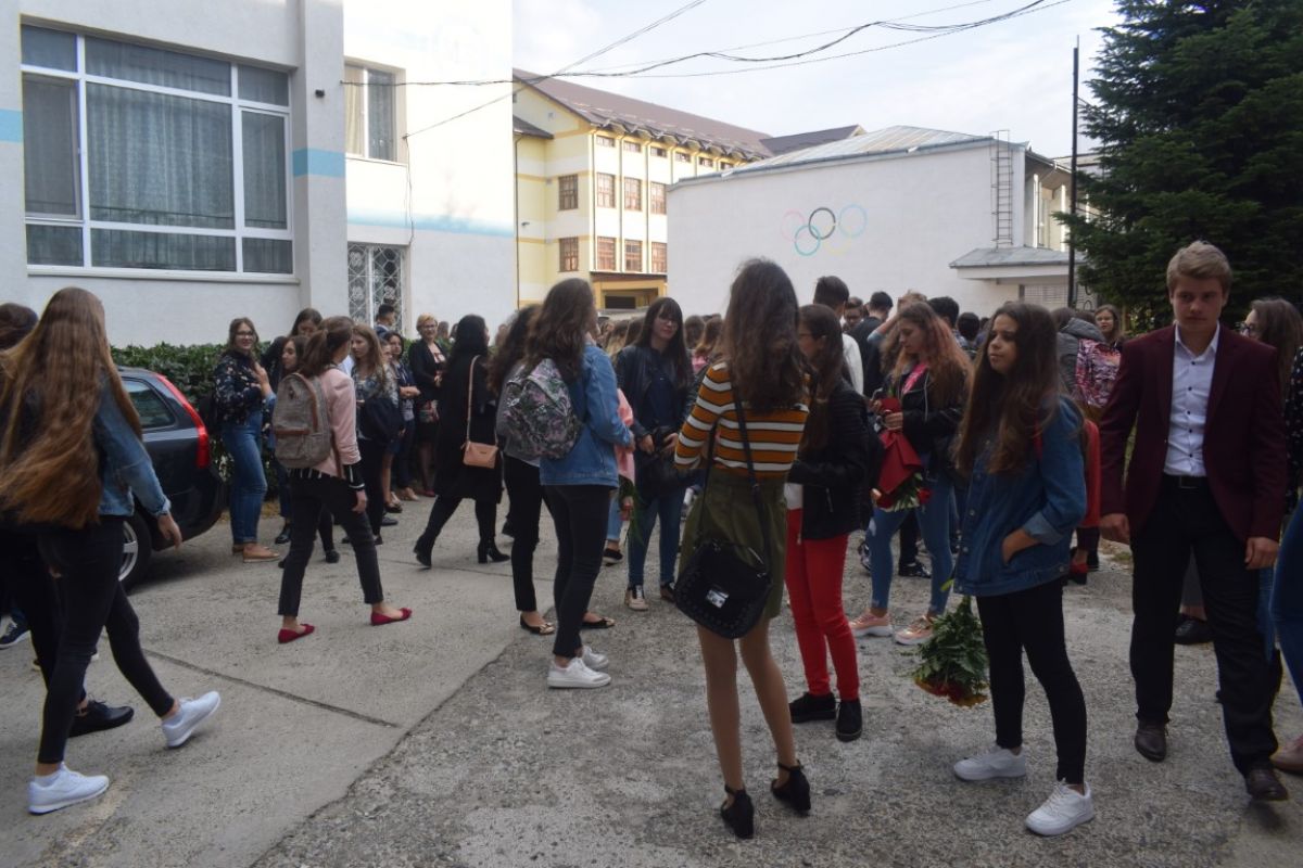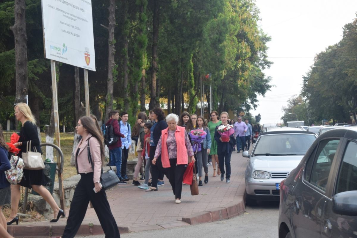 Puține minute peste ora 8:00 din dimineața zilei de luni, 10 septembrie. Strada Octav Onicescu era un furnicar de elevi cu flori în mâini, însoțiți de părinți. Prima zi de școală a fost una animată și la Colegiul Mihai Eminescu.