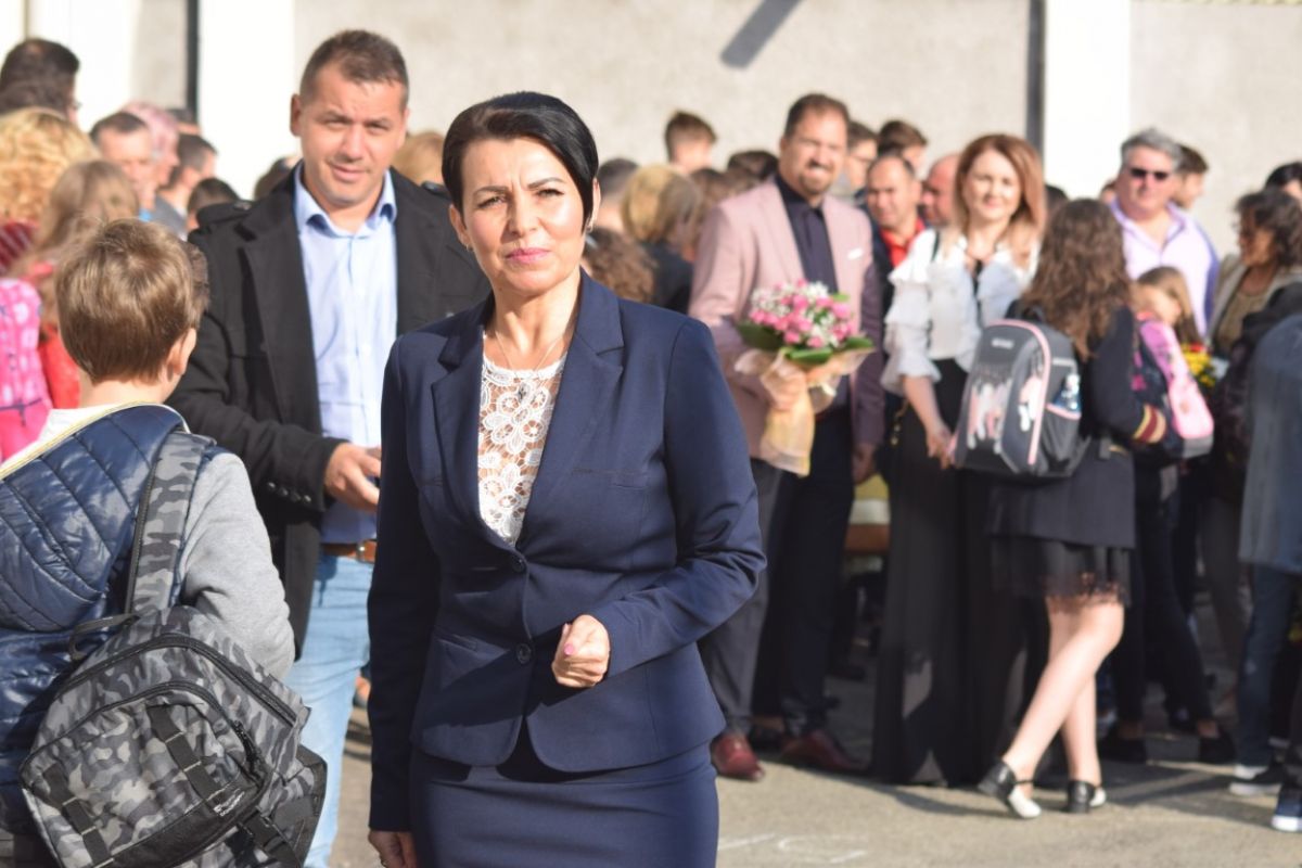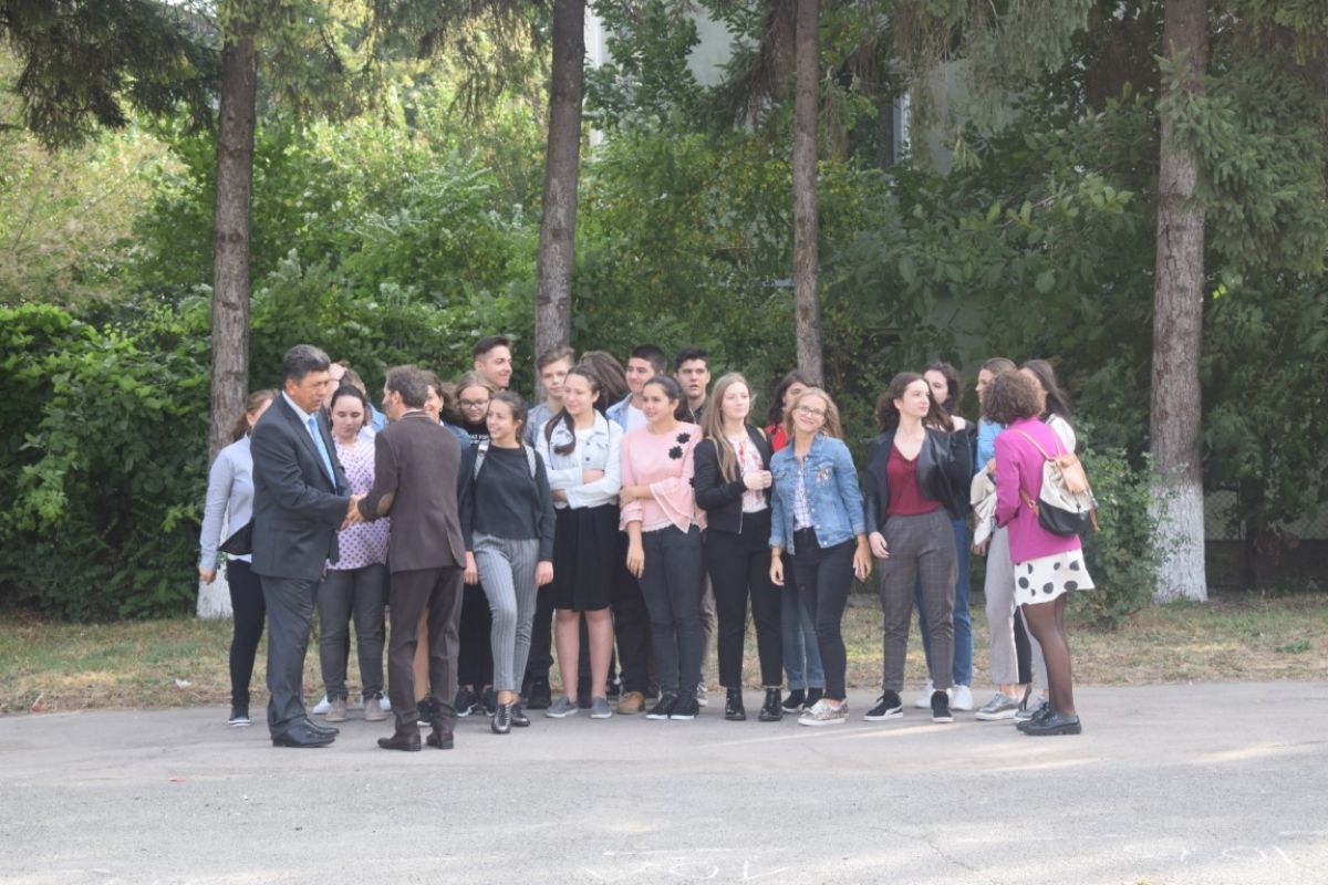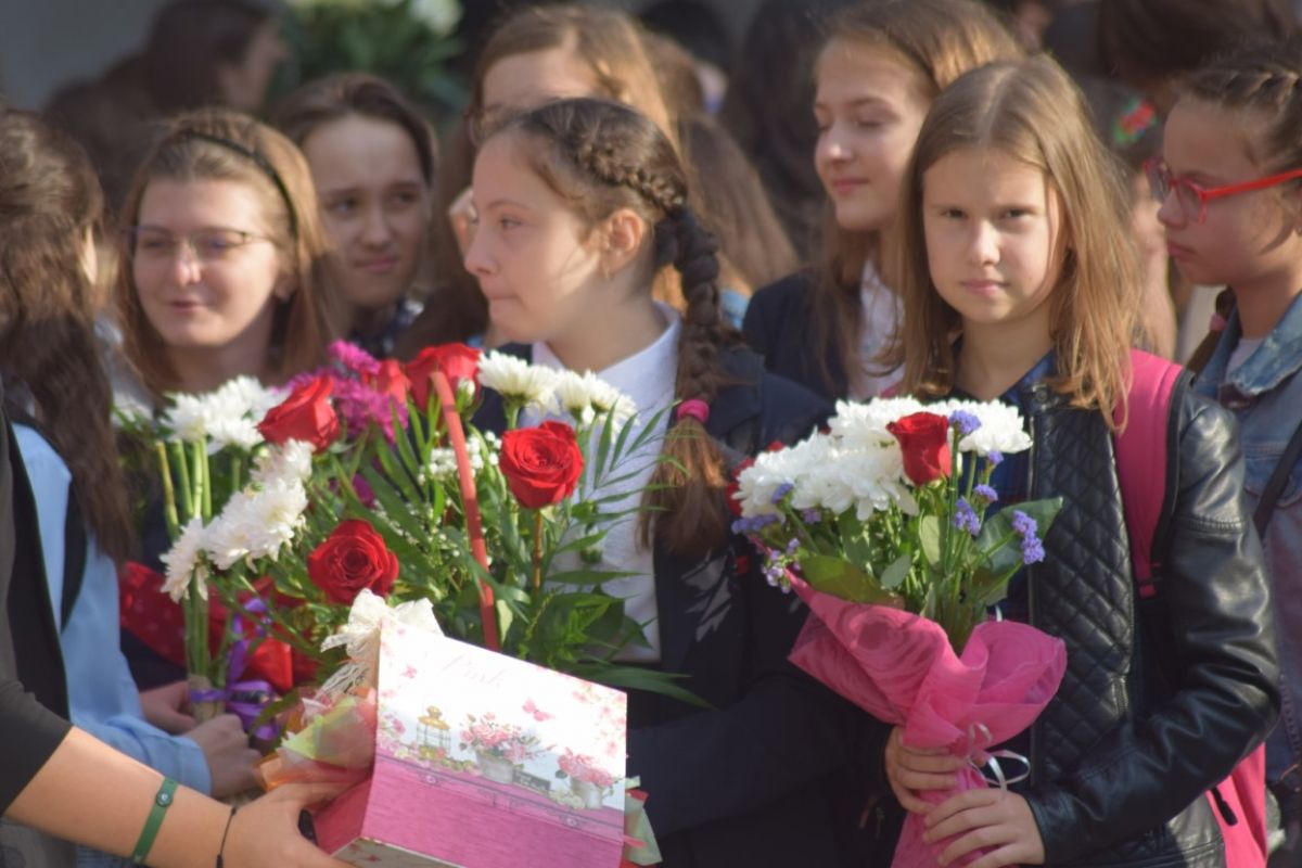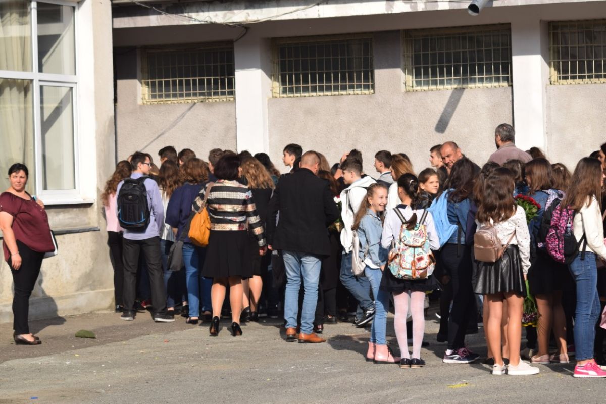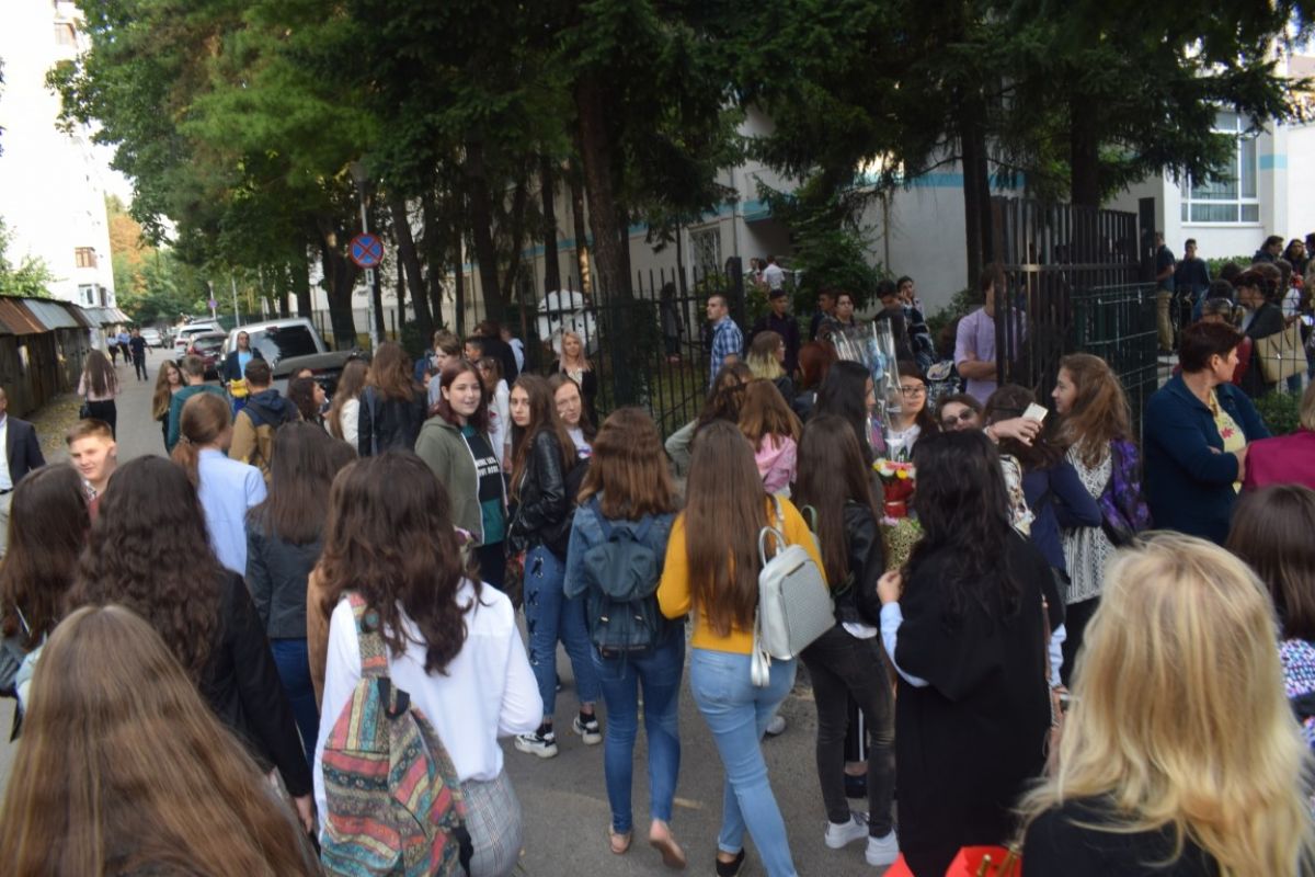 Puține minute peste ora 8:00 din dimineața zilei de luni, 10 septembrie. Strada Octav Onicescu era un furnicar de elevi cu flori în mâini, însoțiți de părinți. Prima zi de școală a fost una animată și la Colegiul Mihai Eminescu.