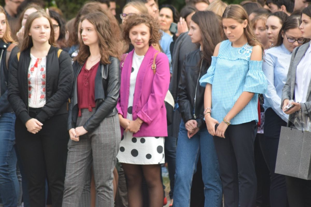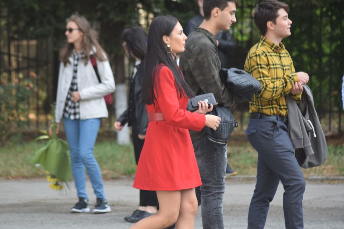 Fiecare își căuta colegii și clasa, zâmbetele și îmbrățișările fiind numitor comun la mai toate grupurile. Și ținutele au fost la deschiderea acestui an mai puțin rigide decât în trecut, putând fi observate cu precădere la eleve culori vii sau rochițe și fustițe mai scurte, pe alocuri chiar tocuri cui.