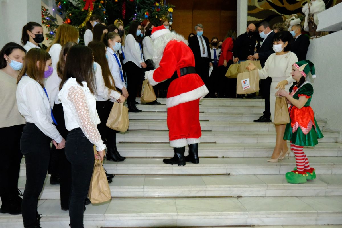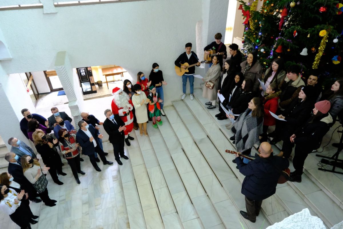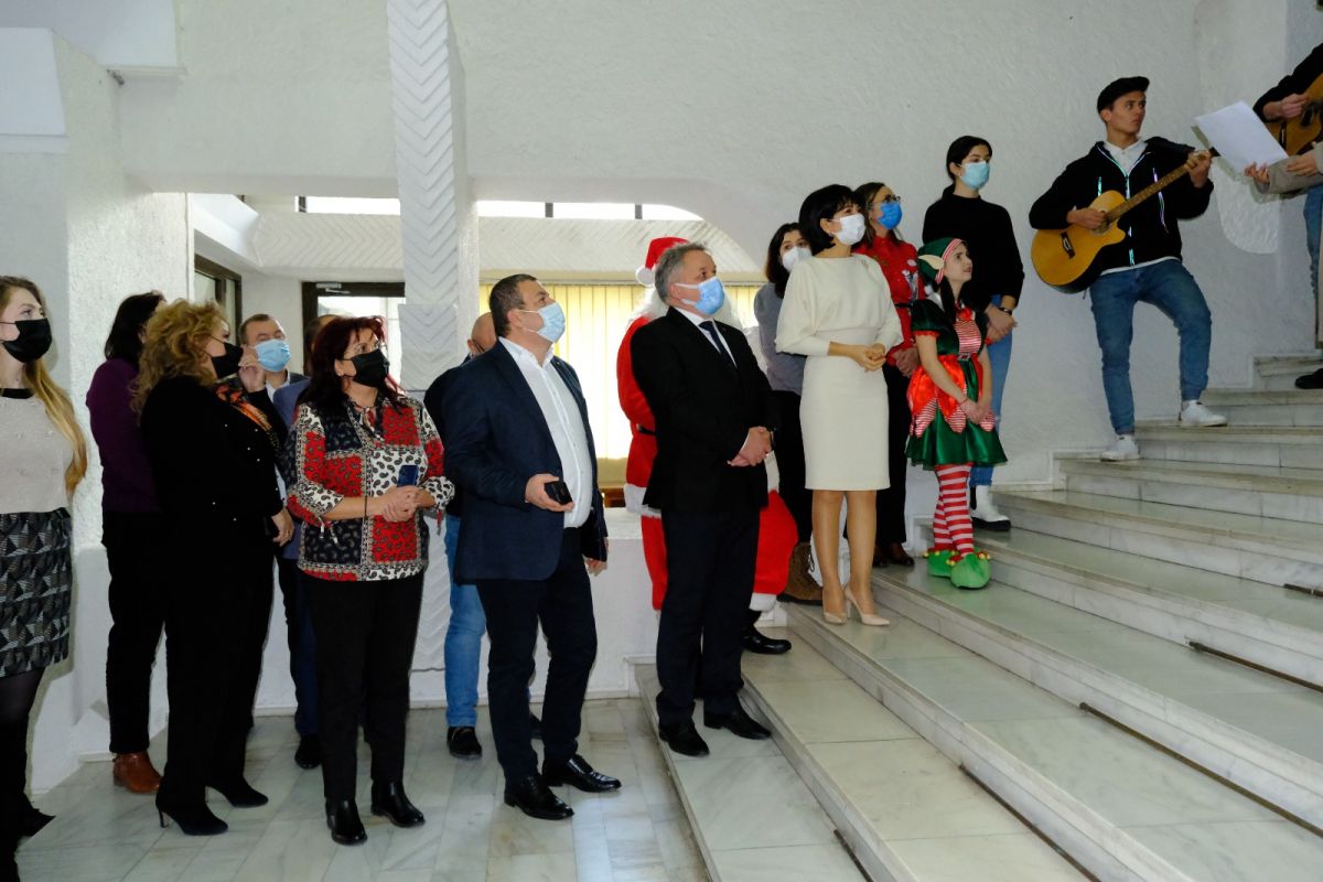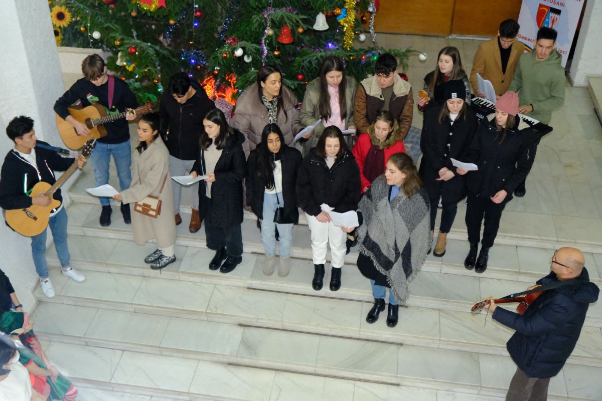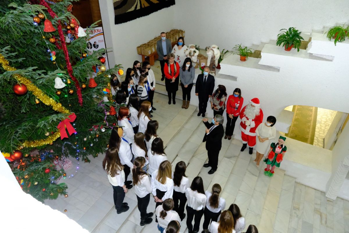 Corul Bisericii Sfântul Ioan, al elevilor de la Liceul Pedagogic și cel al Copiilor de la Fundația „Hand of Help” au colindat la Palatul Administrativ, fiind primiți de președintele Consiliului Județean, Doina Federovici, de vicepreședintele Bogdan Dăscălescu, administratorul public Cristian Nistor și de angajați ai instituției.