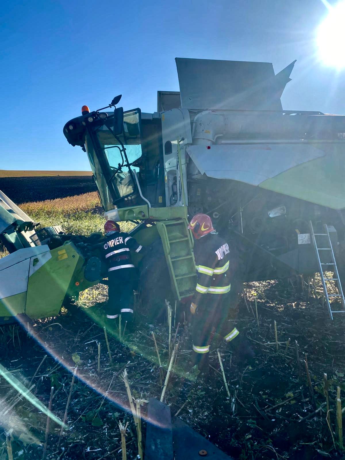 Un alt șofer aflat la volanul unui tractor a observat că iese fum, l-a anunțat pe conducătorul utilajului agricol, apoi au sunat imediat după ajutor.