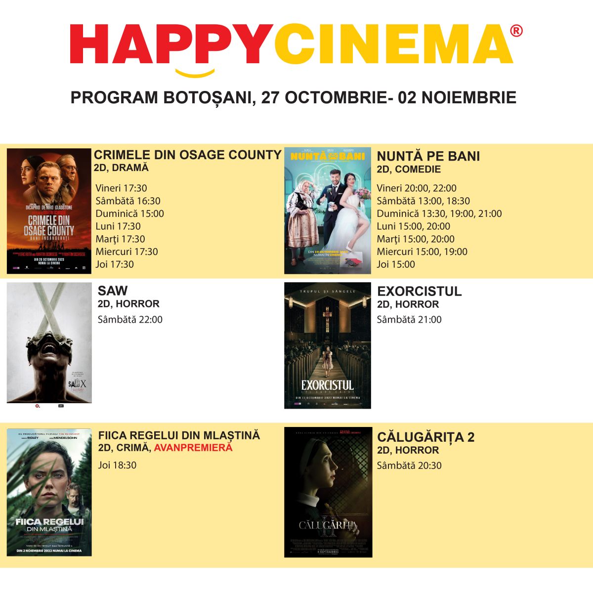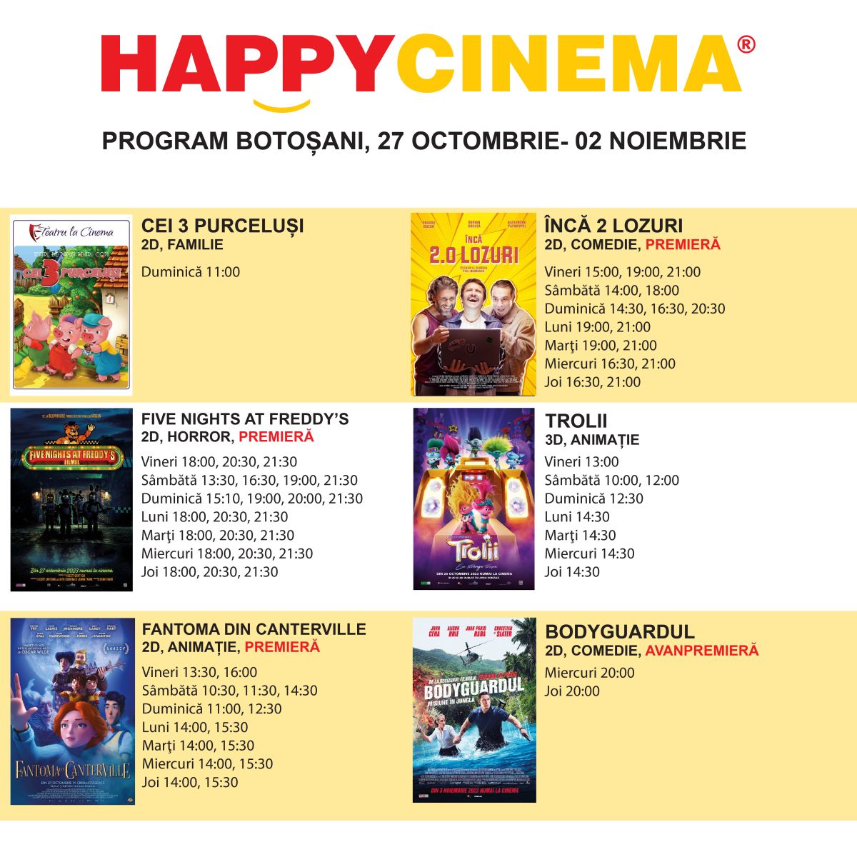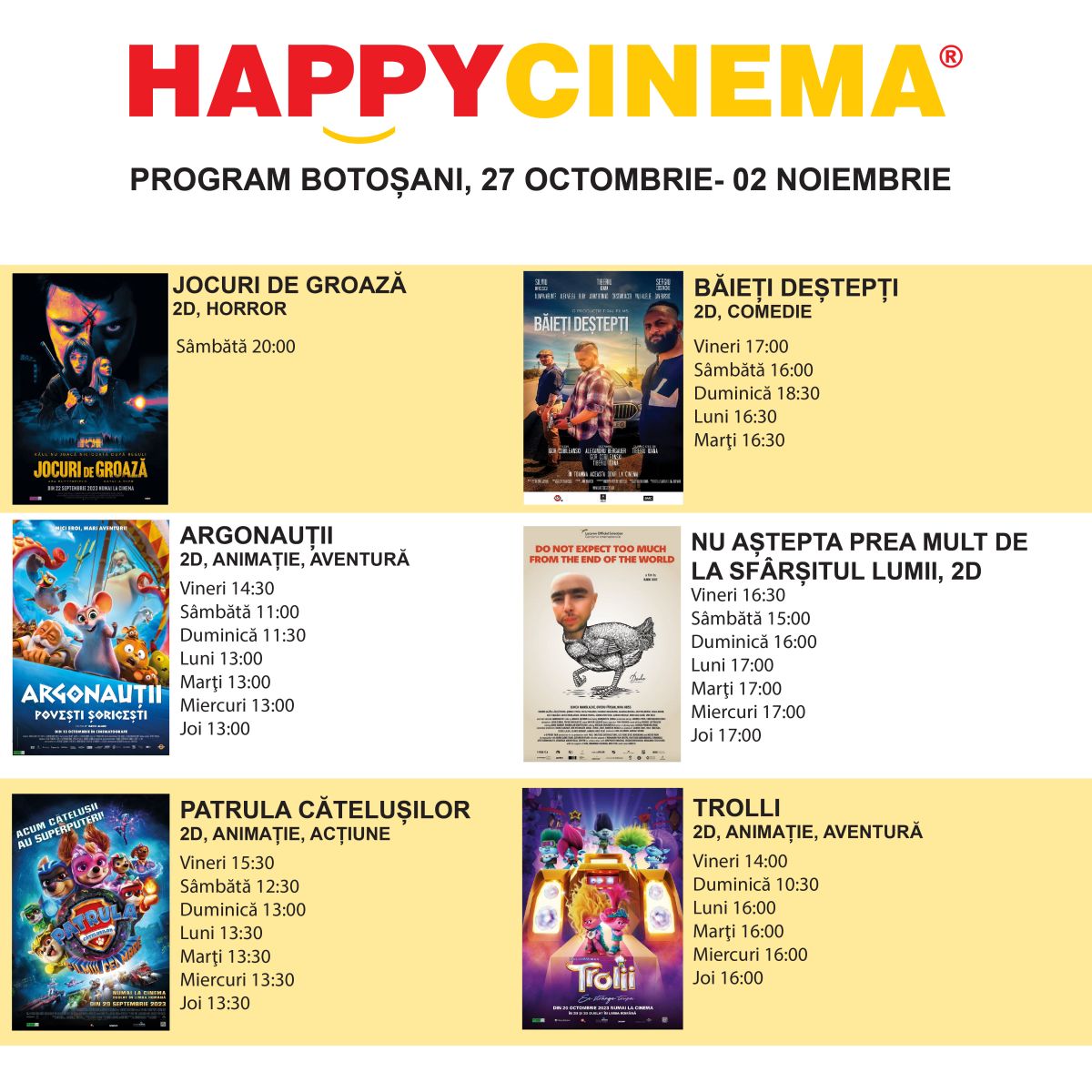 Cinefilii botoșăneni sunt așteptați la Happy Cinema.