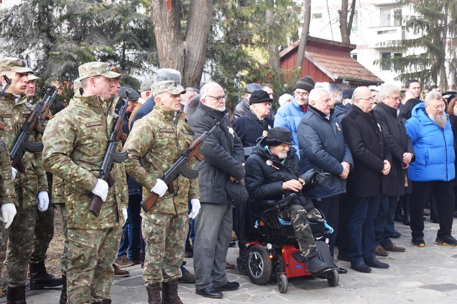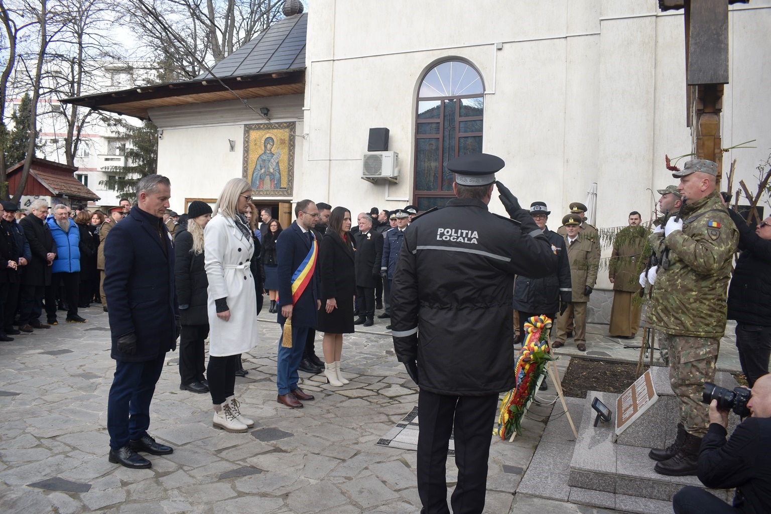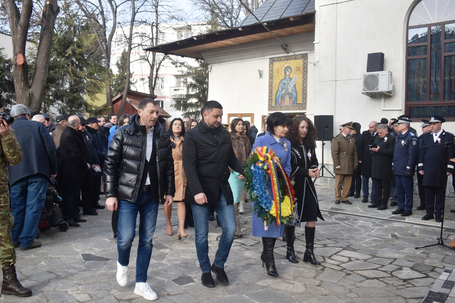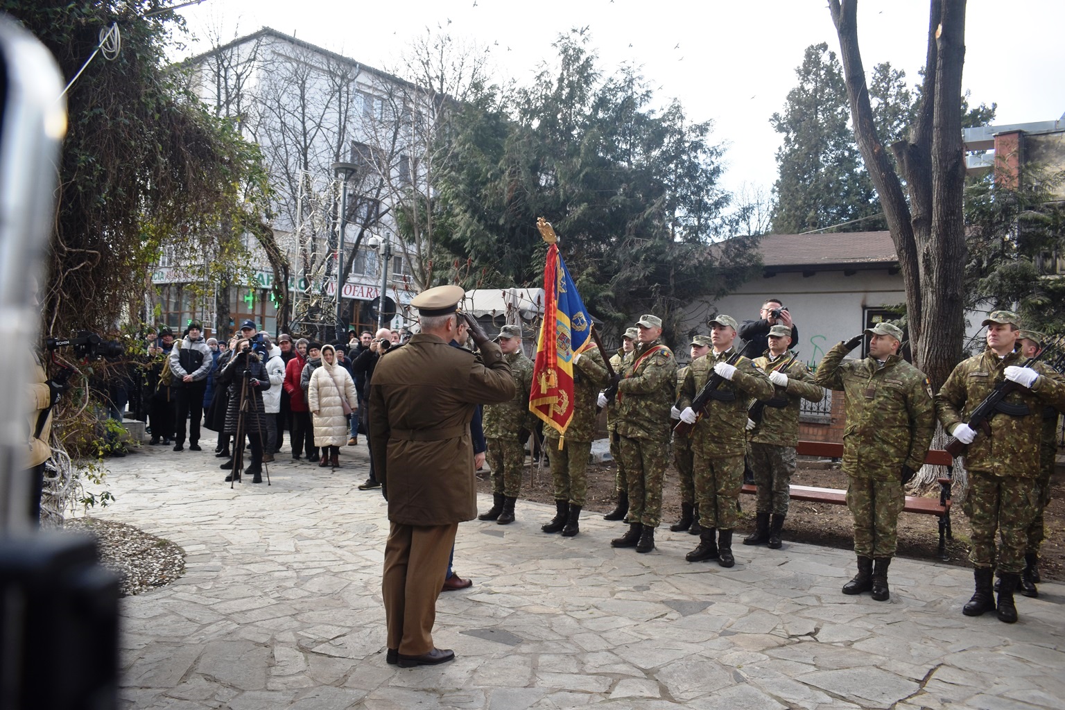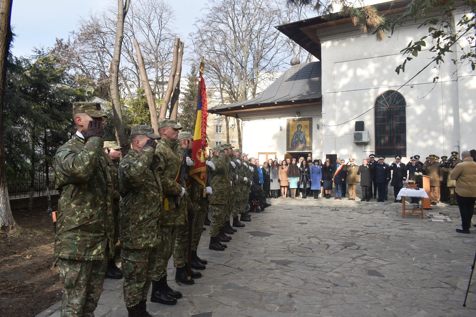 Primarul Cosmin Andrei și lt.col. Ovidiu Damian, comandantul Garnizoanei Botoșani, au salutat Drapelul de Luptă, după care preotul militar Teodor Cenușă a oficiat o slujbă de pomenire.