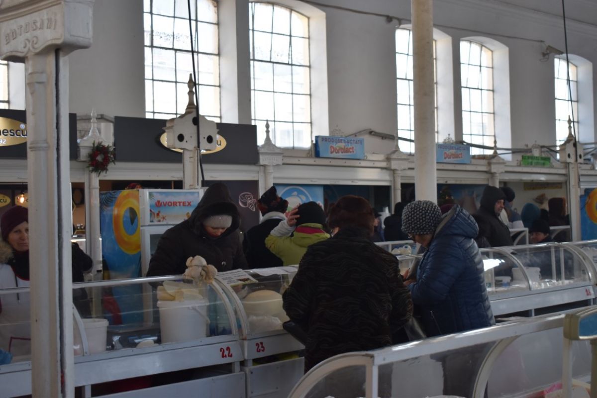 Situaţia este similară şi în hala de lactate, diferenţa fiind că aici se regăsesc şi tarabe separate de magazinele comercianţilor. Aceştia sunt dornici să-şi vândă cât mai repede produsele şi consideră că nu sunt încurcaţi de temperaturile joase.
