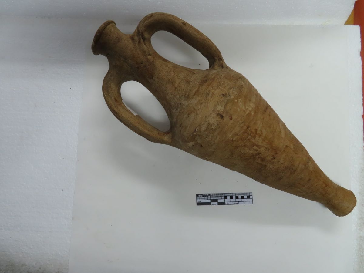 Este vorba despre o amforă veche de cca. 1.600 de ani, descoperită întreagă, în Mormântul 254 din necropola de la Mihălășeni, județul Botoșani, cercetată de arheologul Octavian Liviu Şovan.