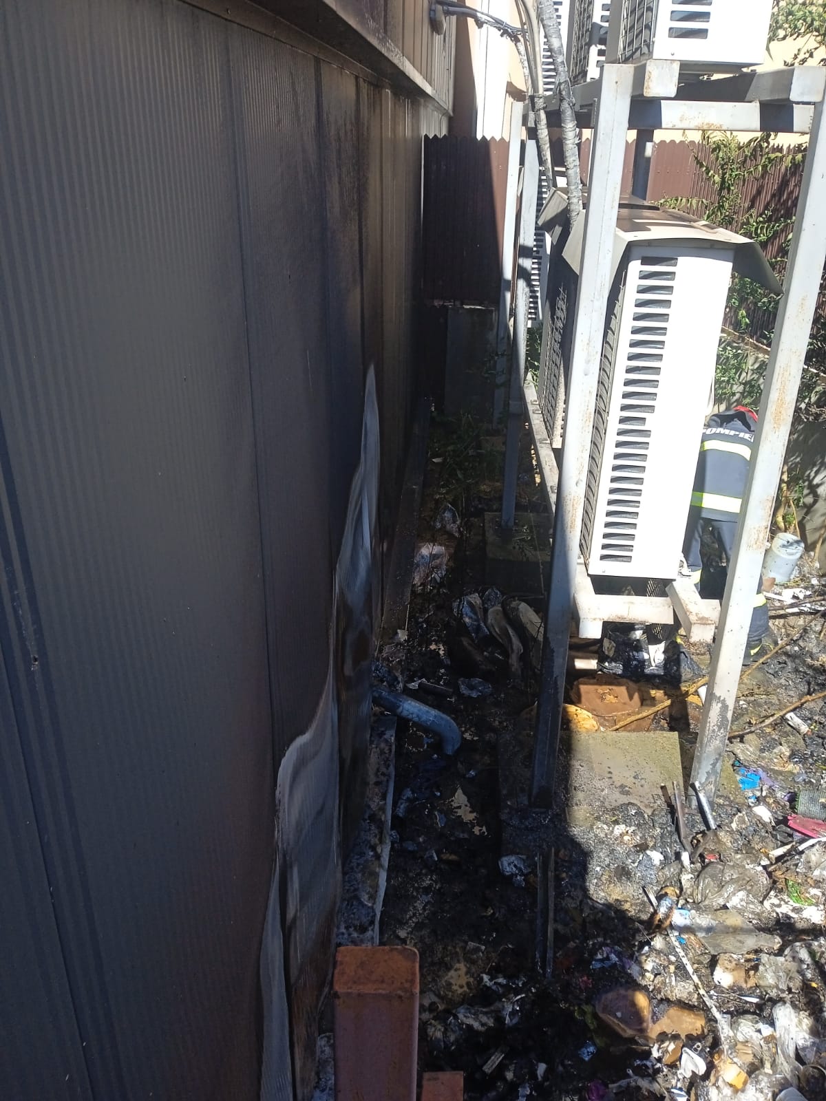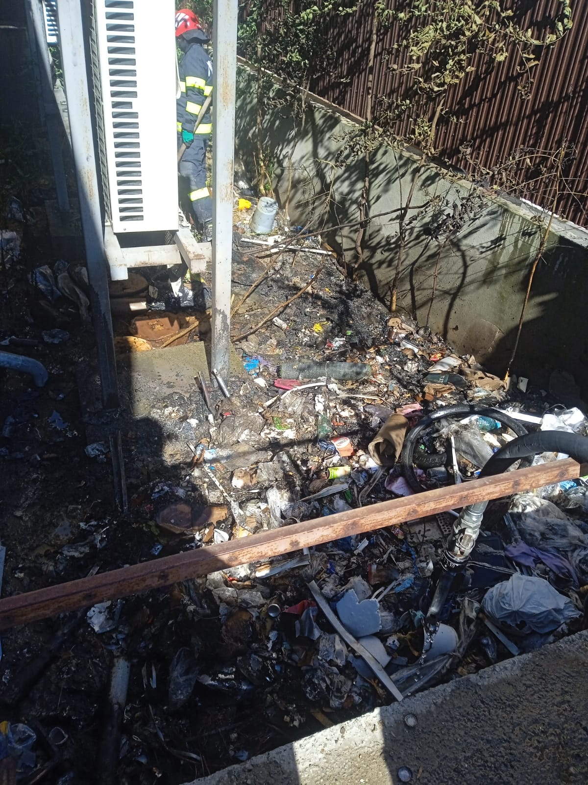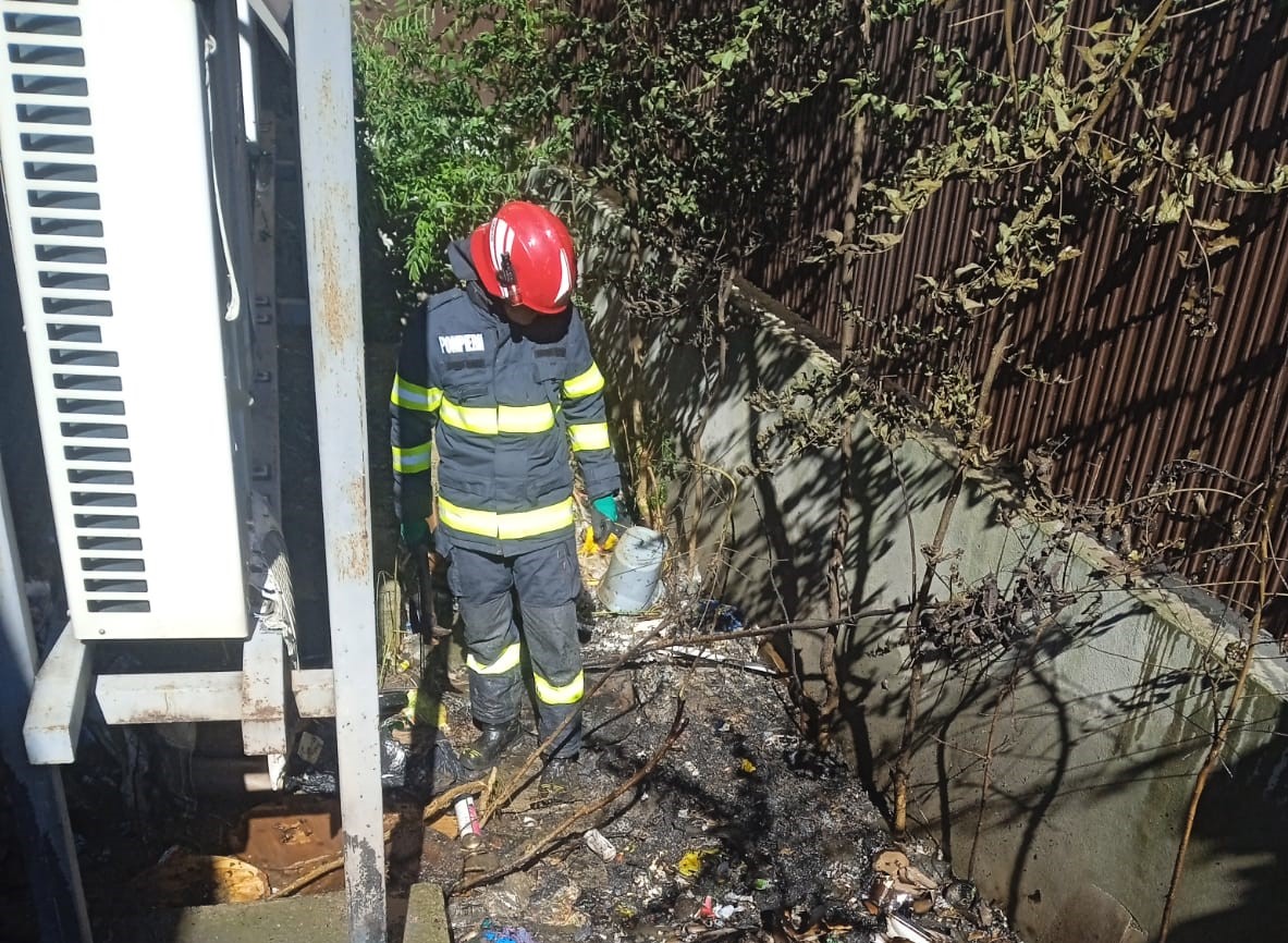 Un incendiu, pornit de la gunoiul menajer, s-a extins la peretele construcției, punând în pericol magazinul.