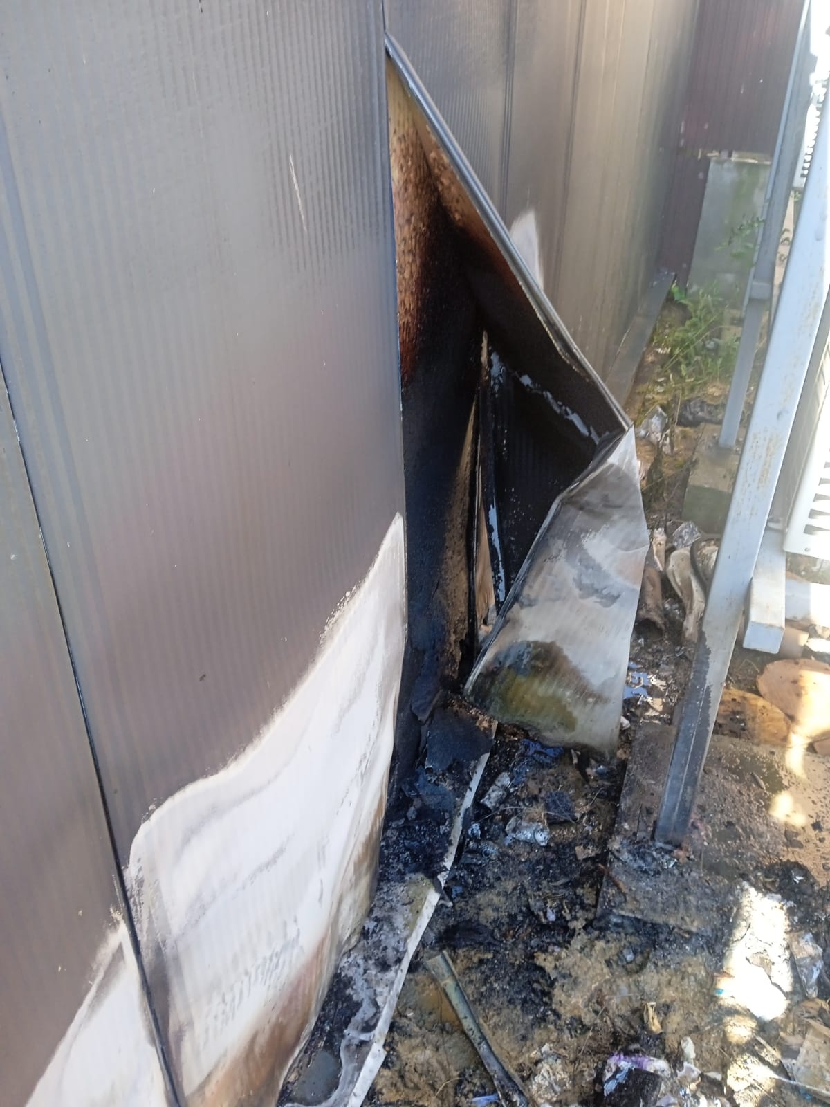 Au ars aproximativ 100 de kilograme de gunoi menajer și cca. 25 de metri pătrați dintr-un perete construit din panouri sandwich.