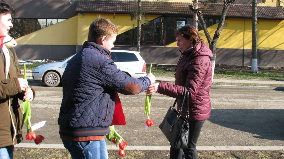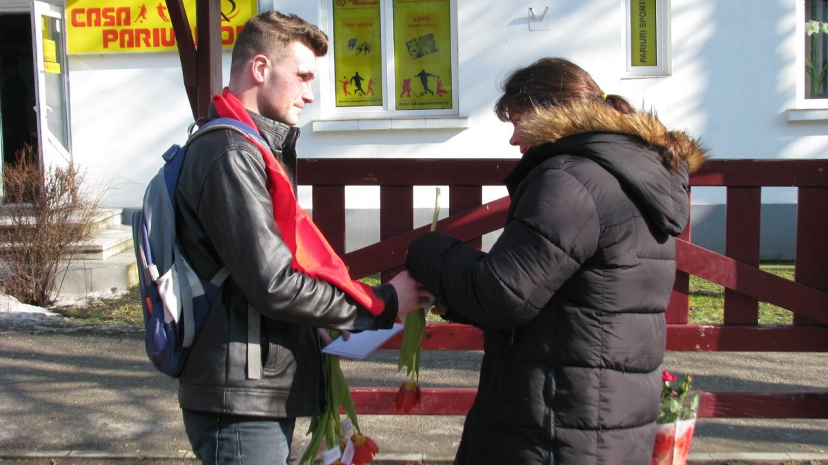 Astfel, pe parcursul întregii zile de ieri, membrii TSD Săveni s-au aflat în principalele zone ale orașului pentru a împărți flori, mărțișoare și felicitări doamnelor din Săveni.