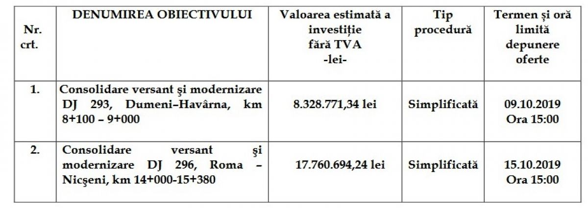 Precizăm faptul că fondurile sunt aprobate prin Subprogramul-Lucrări în primă urgență în bugetul Companiei Naționale de Investiții pentru anul 2019, Devizele Generale fiind actualizate atât pentru manoperă, conform O.U.G. nr. 114/2018, cât și pentru prețurile la materialele de construcții, utilaj și transport.