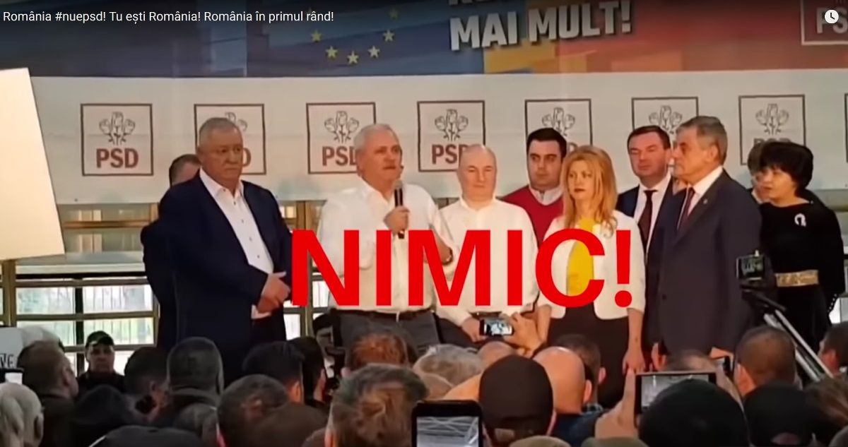Toate aceste lucruri trebuie să constituie, din nou și din păcate, o lecție. A suta sau a mia oară. Poporul are voce și trebuie să se exprime clar și răspicat. La urne. Poporul trebuie să le arate pesediștilor și lui Liviu Dragnea cine este adevăratul NIMIC al acestei țări. Trebuie s-o facă acum, pe 26 mai, și trebuie s-o facă de fiecare dată când sunt alegeri. Este singurul mod prin care răul reprezentat de Dragnea și PSD poate fi oprit. România poate fi readusă pe calea firească, poate fi însănătoșită, doar prin votul românilor.
