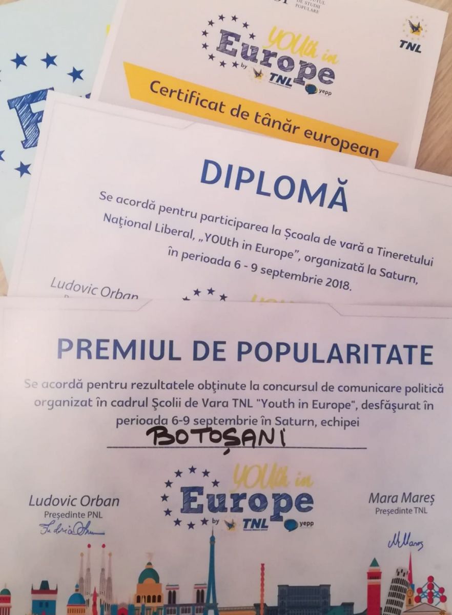 “TNL Altfel” : implicare, perseverență, performanță.Acestea sunt obiectivele urmărite de Tineretul Național Liberal în ediția din acest an a Școlii de Vară - “YOUth in Europe”, în cadrul căreia județul Botoșani a obținut Premiul Special de Popularitate la concursul de “Comunicare Politică”.