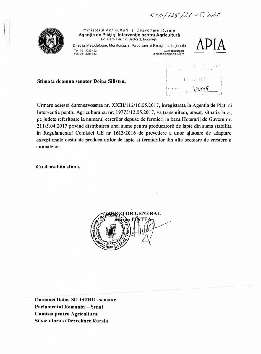 Mulțumesc pe această cale Ministerului Agriculturii și Dezvoltării Rurale coordonat de dl Petre Daea care a înțeles pe deplin necesitatea susținerii micilor fermieri crescători de bovine.