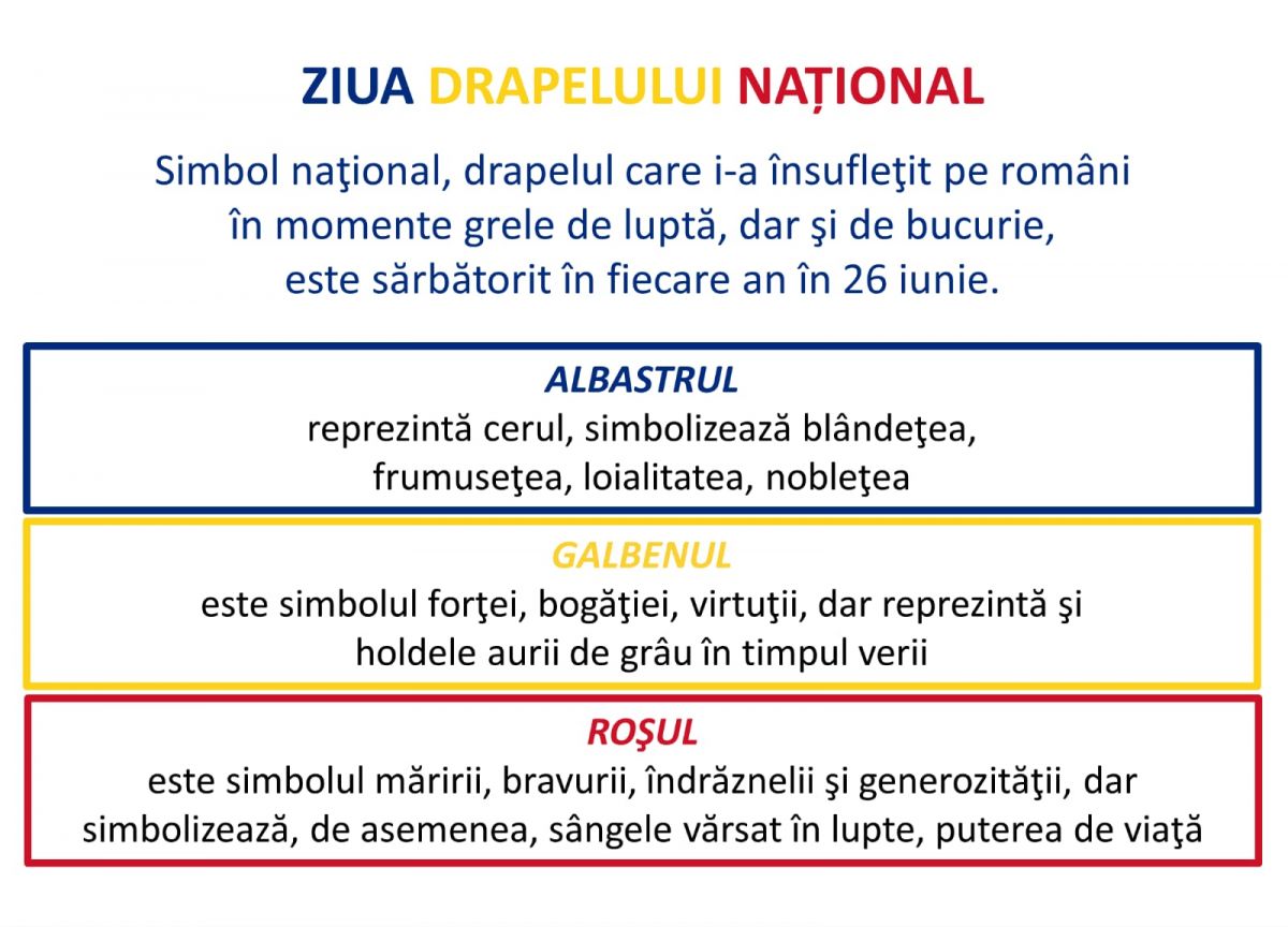 Simbol al unității și identității românești, drapelul național este sărbătorit în fiecare an la 26 iunie. Această dată a fost aleasă în amintirea zilei în care tricolorul roșu, galben și albastru a fost adoptat ca simbol al națiunii române, în timpul Revoluției de la 1848.