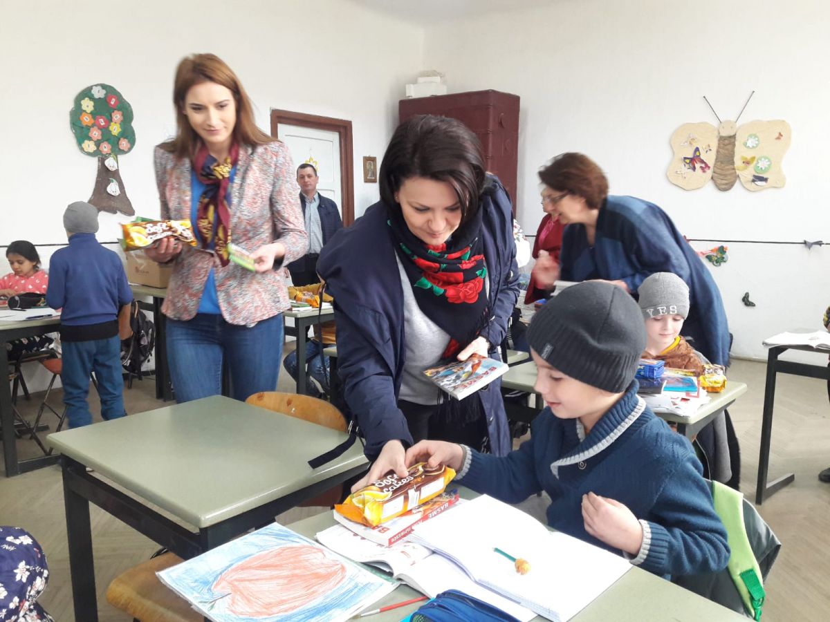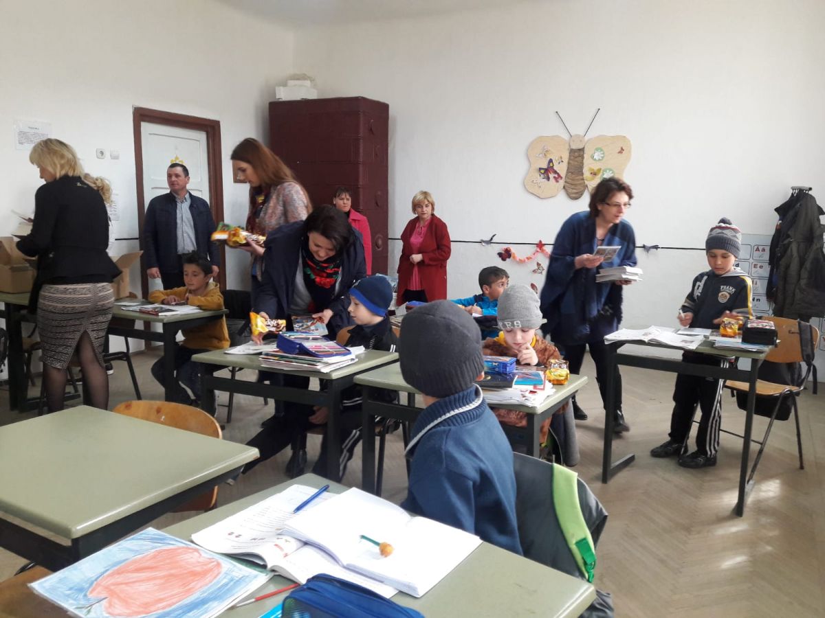 Primii care au primit pachete cu cărți, creioane colorate si dulciuri au fost 50 de elevi si preșcolari din satul Unguroaia, care au fost încurajați să citească.