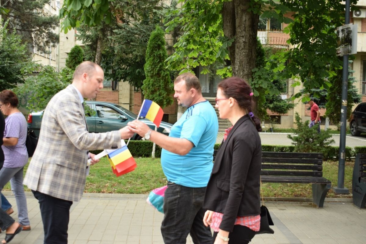Astfel, pe Pietonalul Unirii, viceprimarii municipiului Botoșani, alături de consilieri municipali și județeni, au împărțit peste 1.000 de stegulețe tricolore și pliante inscripționate cu explicații referitoare la semnificația culorilor.