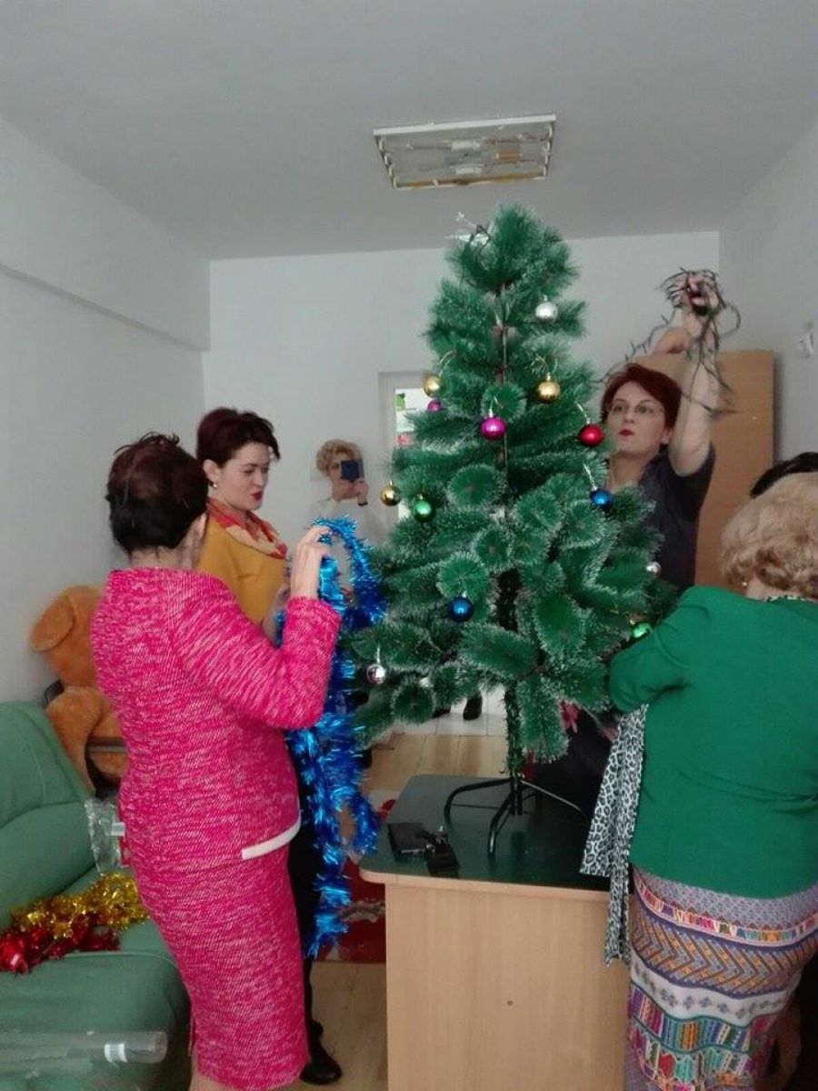 Pe lângă jucării, hăinuțe, dulciuri și alte articole necesare celor mici, doamnele social-democrate au dăruit un brăduț și ornamente specifice de care copiii să se bucure în această perioadă.