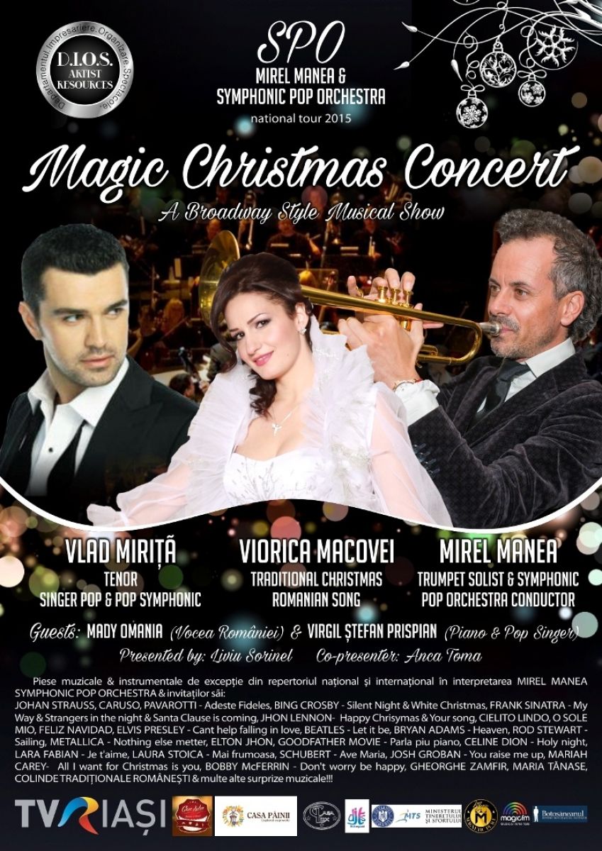 Un artist şi un impresar din Botoşani îşi dau mâinile şi alături de vedete din întreaga ţară vor organiza un concert ca la… Manhattan. În perioada 9 – 14 decembrie în mai multe judeţe din Moldova va fi pus în scenă Magic Christmas Concert, un concept de spectacol live mai puţin abordat şi dezvoltat în România.