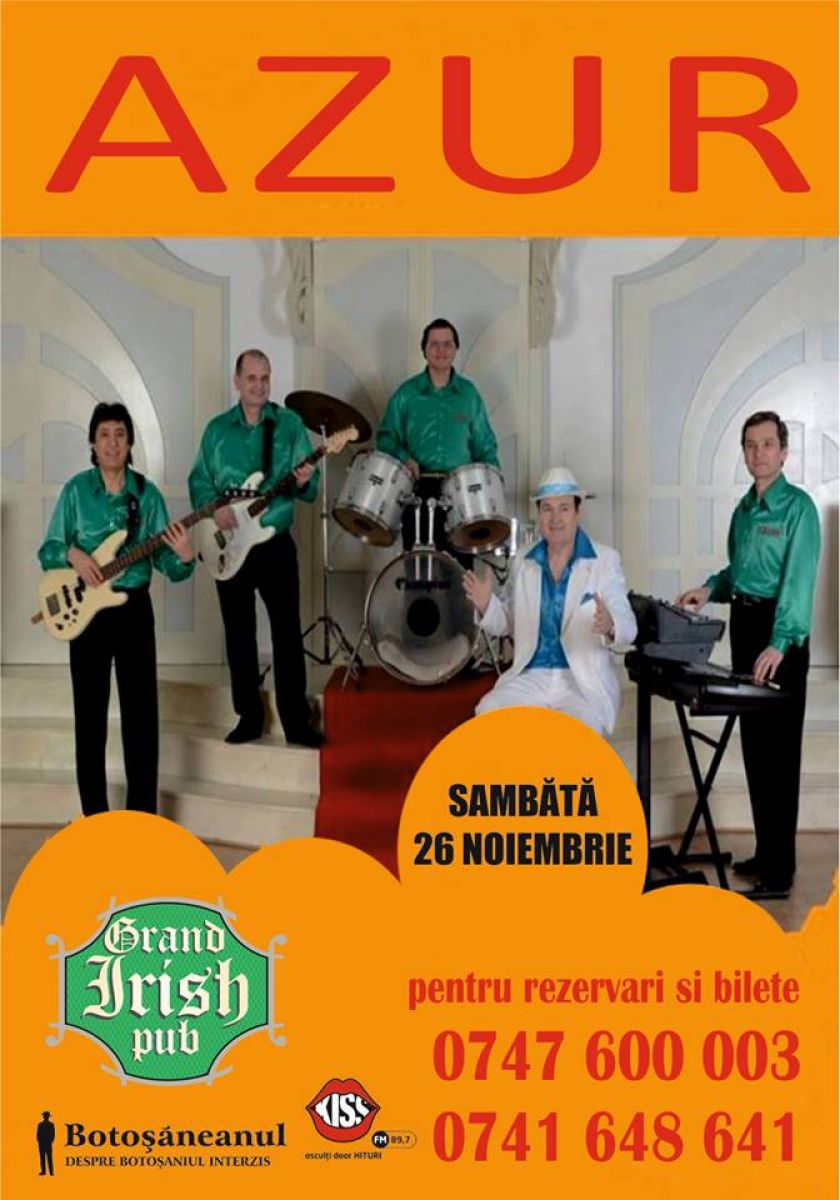 Ceea ce nu reuşesc mulţi dintre artiştii consideraţi în vogă, stă în putinţa unei formaţii celebră înainte de revoluţie. Seara aceasta la Grand Irish Pub din Botoşani Azur va susţine un spectacol „sold out”.