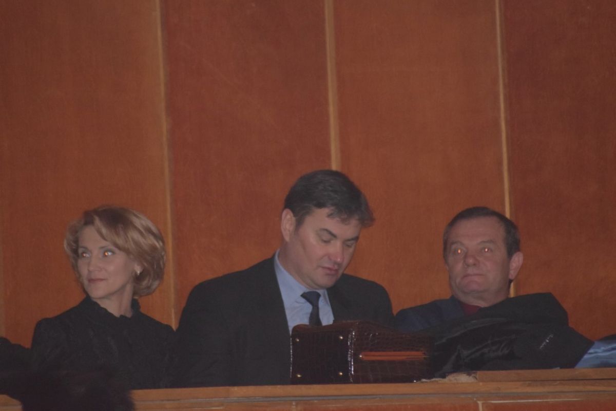 Concertul a început la ora 17:00, în debut fiind citite cu pauze lungi numele politicienilor care au finanțat evenimentul, în așteptarea aplauzelor firave care s-au auzit din sală. Ulterior s-a dat citire și firmelor care au contribuit cu bani, într-un ritm mai alert. De altfel, în sală au putut fi observați mai mulți membri ai PSD, printre care și primari din județ.