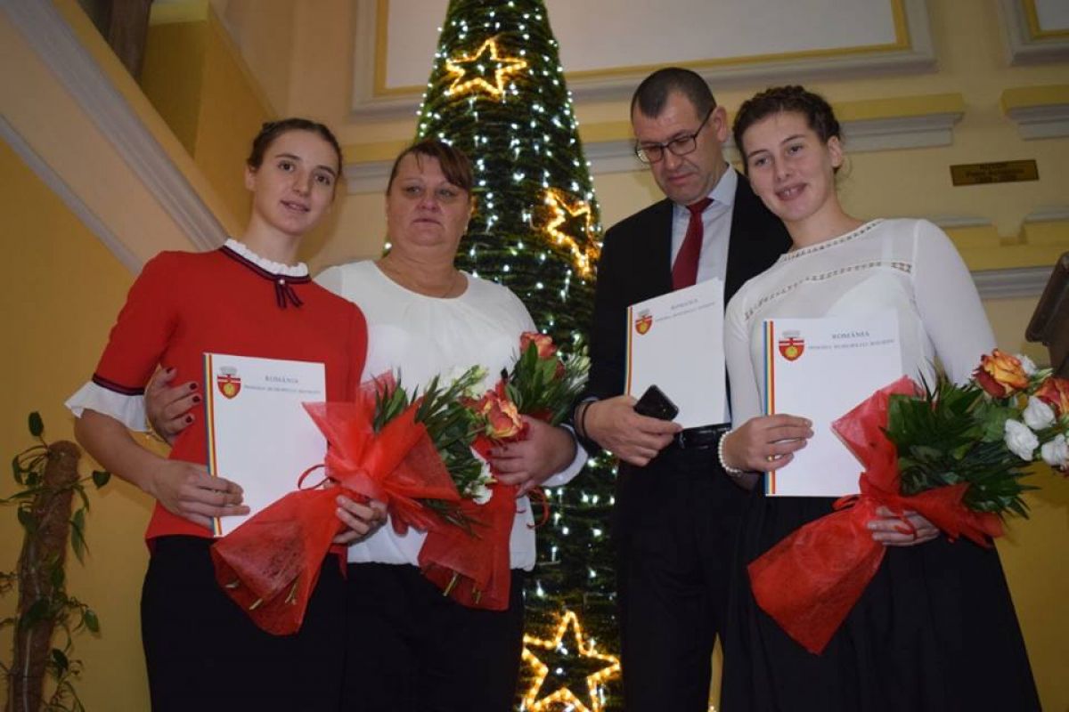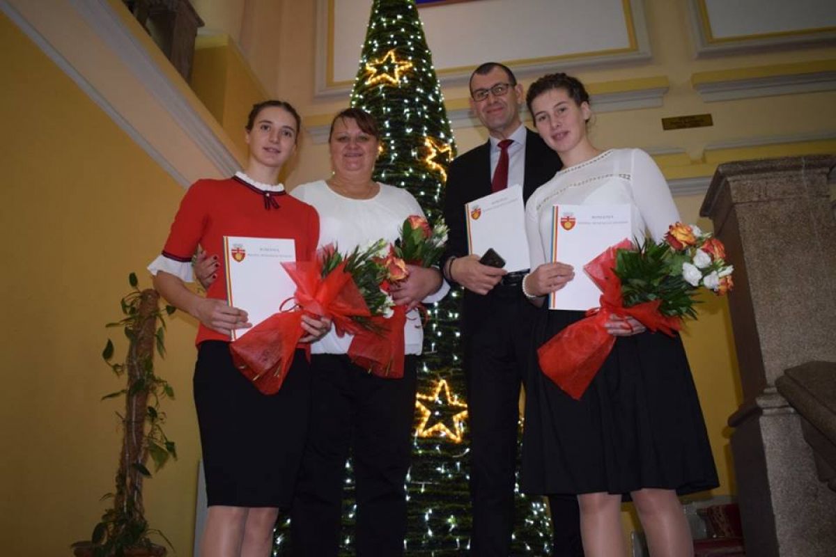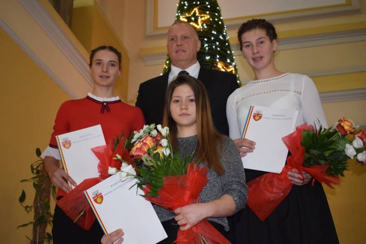 Cele trei sportive care au reușit performanțe la competiții naționale și internaționale anul acesta, din cadrul Clubului Sportiv Botoșani, au fost invitate pentru felicitări și în sala Mihai Eminescu a Primăriei Botoșani.