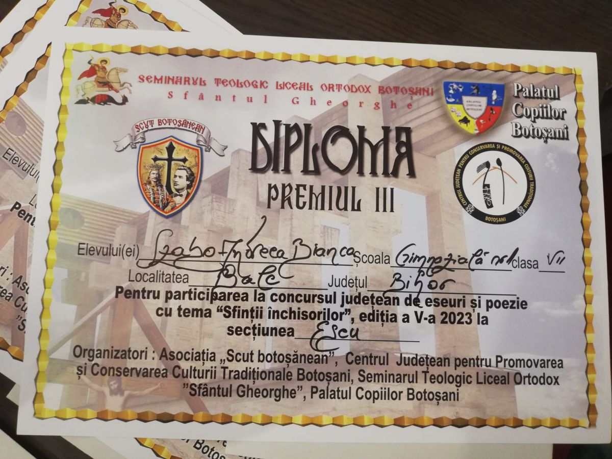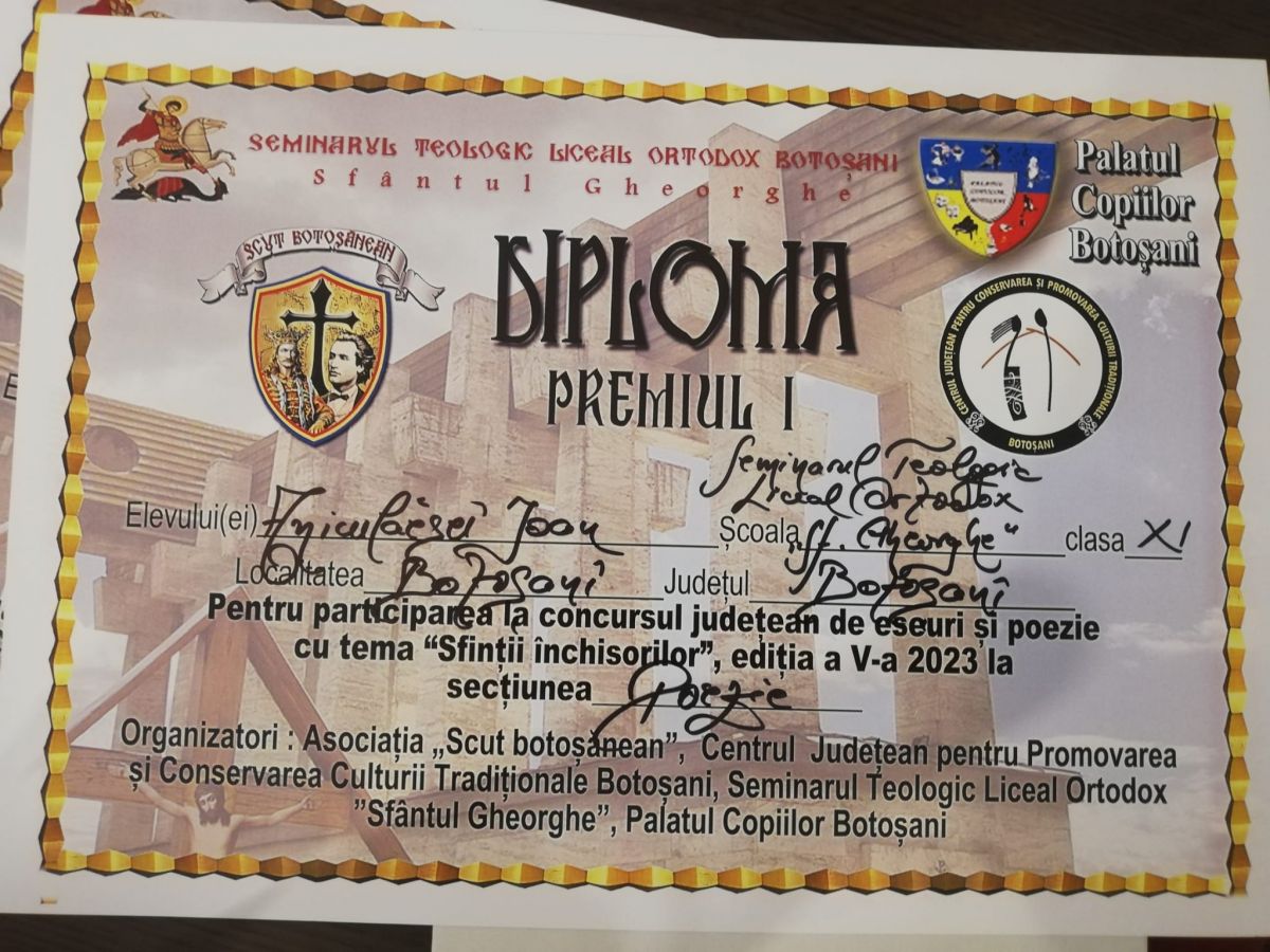 Seminarul Teologic Liceal Ortodox ”Sfântul Gheorghe”, Inspectoratul Școlar Județean Botoșani, Palatul Copiilor Botoșani și Asociația ”Scut botoșănean” au organizat Concursul Județean Interliceal, gimnazial de Arte Plastice, Eseu și Poezie cu tema ”Sfinții Închisorilor”, ediția 2023.