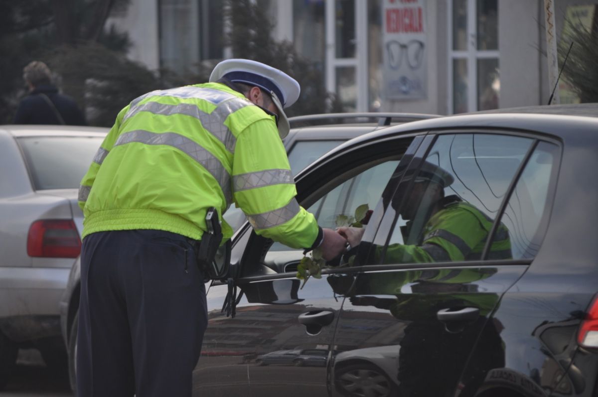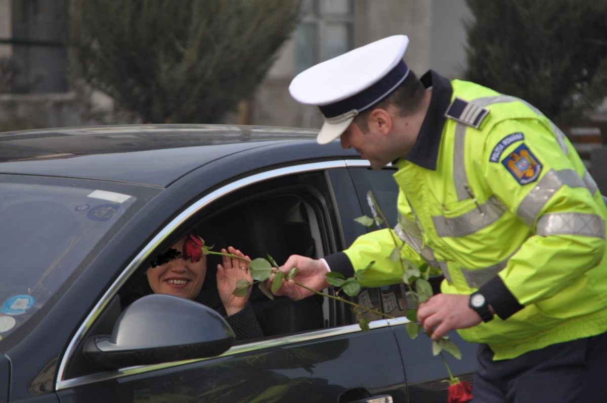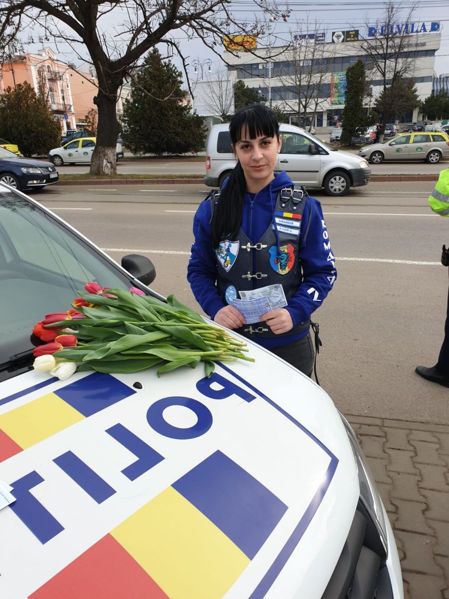 Aceștia au oprit toate mașinile conduse de botoșănence. Polițiștii au amendat conducătoarele auto cu flori şi sfaturi preventive.