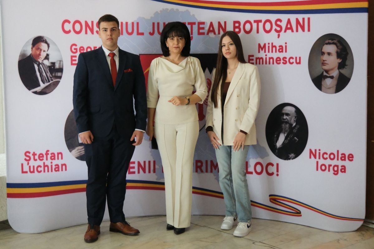„Noi, Consiliul Județean, ne-am alăturat demersului Fundației Județene pentru Tineret Botoșani în cadrului proiectului Reprezentant pentru o zi”. Și astăzi în fața dvs aveți practic trei președinți de CJ. Sunt însoțită astăzi de domnișoara Amalia Bărboșelu, este elevă a Liceului Grigore Antipa Botoșani și de dl David Ciplea, elev al Colegiului Național „Mihai Eminescu”. Astăzi având titlul onorific de președinte al Consiliului Județean pentru o zi”,