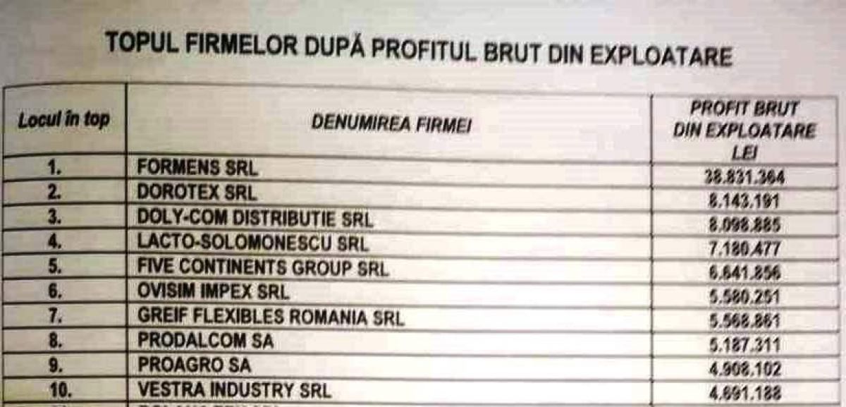 Poate cea mai importantă secțiune a Topului Județean al Firmelor 2019 lansat vineri seară la Cucorăni este cea a profitului.