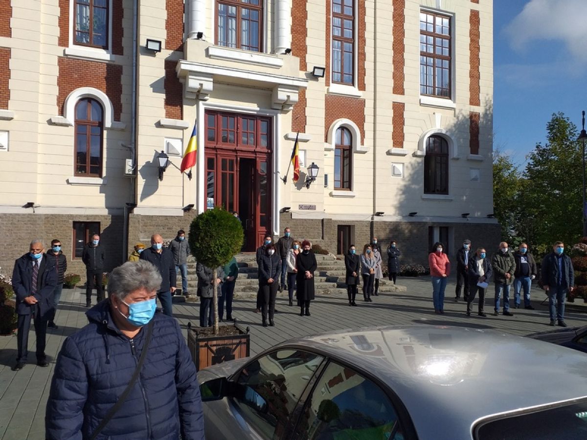 Angajații primăriei Dorohoi, în frunte cu primarul Dorin Alexandrescu, au păstrat miercuri câteva minute de reculegere, în fața primăriei, în memoria lui Constantin Onciu, consilierul primarului, decedat duminică, 1 noiembrie, în spital, în urma infecției cu COVID-19.