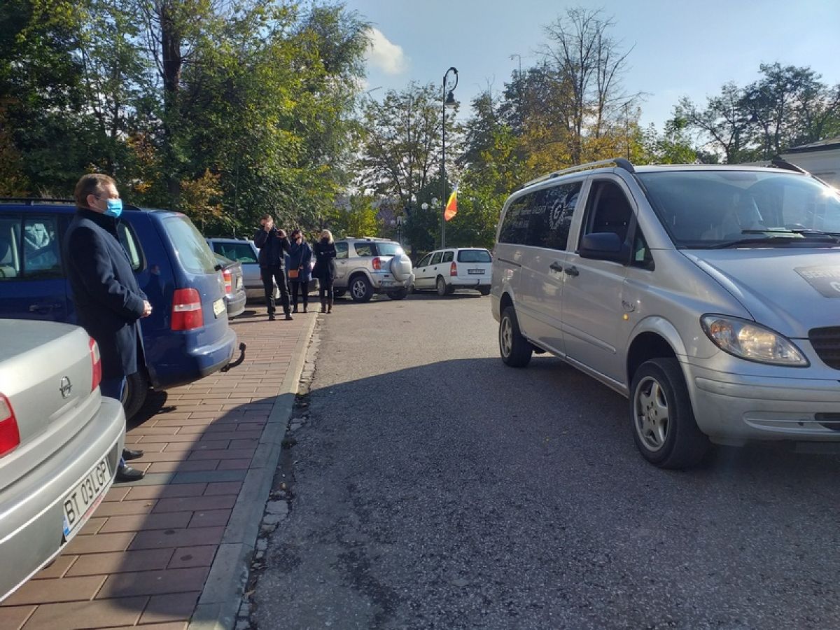 Sicriul cu trupul neînsuflețit a ajuns în fața primăriei Dorohoi, venind de la morga din Botoșani, cu puțin înainte de ora 12.00, fiind transportat într-o mașină funerară.