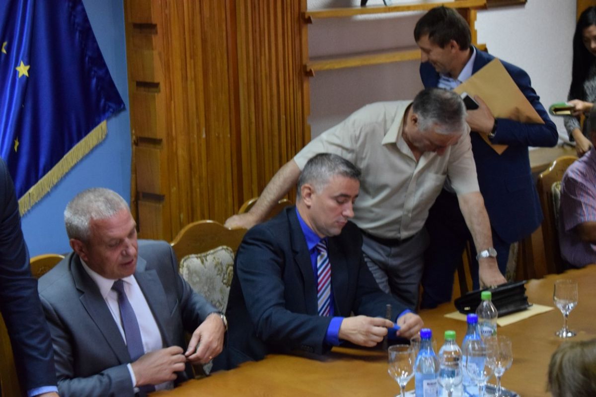 Ședința a avut loc în sala mică a Palatului Administrativ, cea încăpătoare fiind utilizată pentru o videoconferință cu Ministerul Afacerilor Interne. Consilierii județeni s-au îngrămădit la masă pentru lucrări, cei care nu au mai prins loc, s-au așezat pe scaunele din spate.