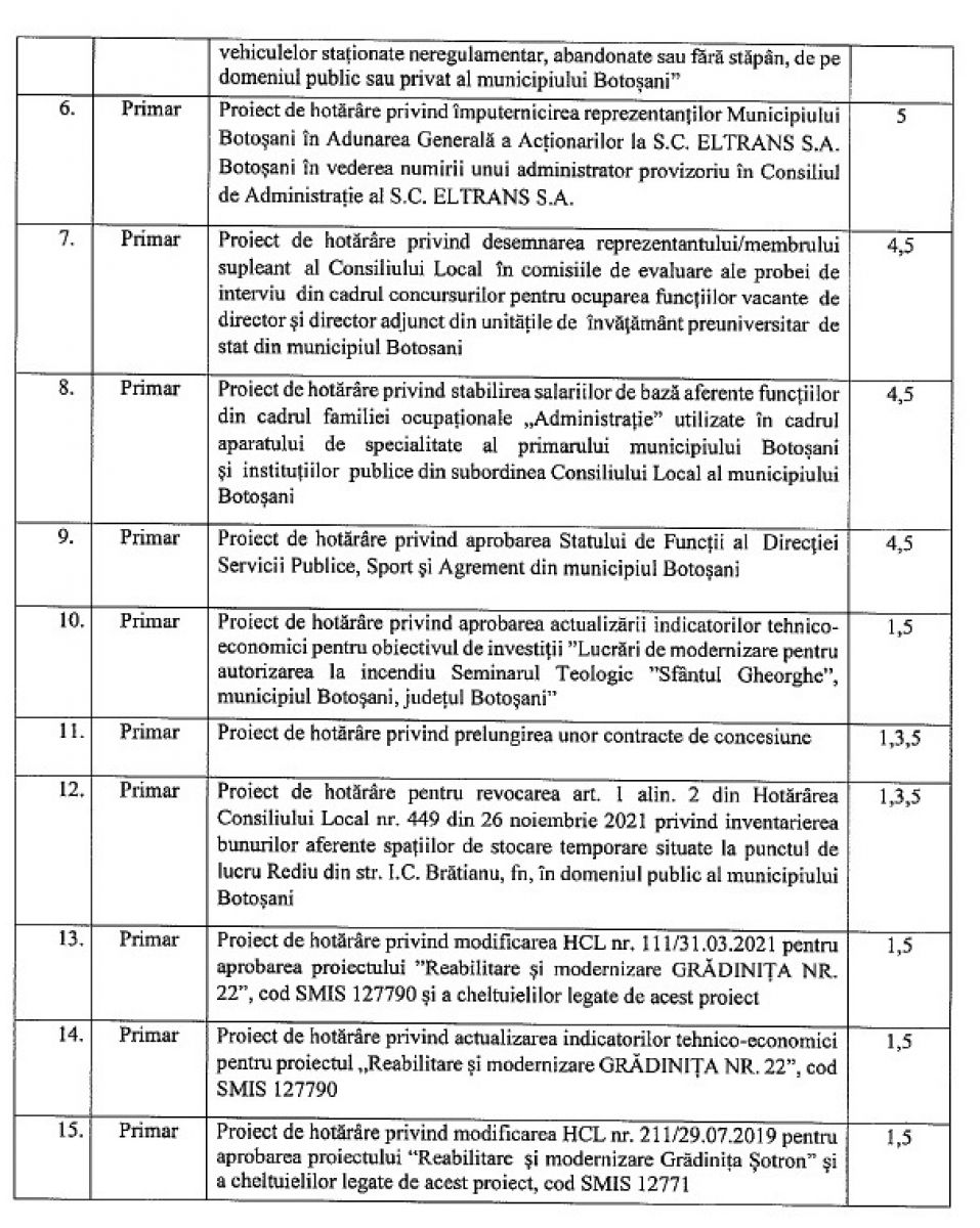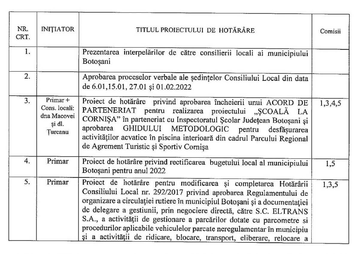 Se convocă, în şedinţă ordinară, Consiliul Local al Municipiului Botoşani, pentru data de 24.02.2022, ora 10,00 în sala de ședințe „Mihai Eminescu” din sediul Primăriei.