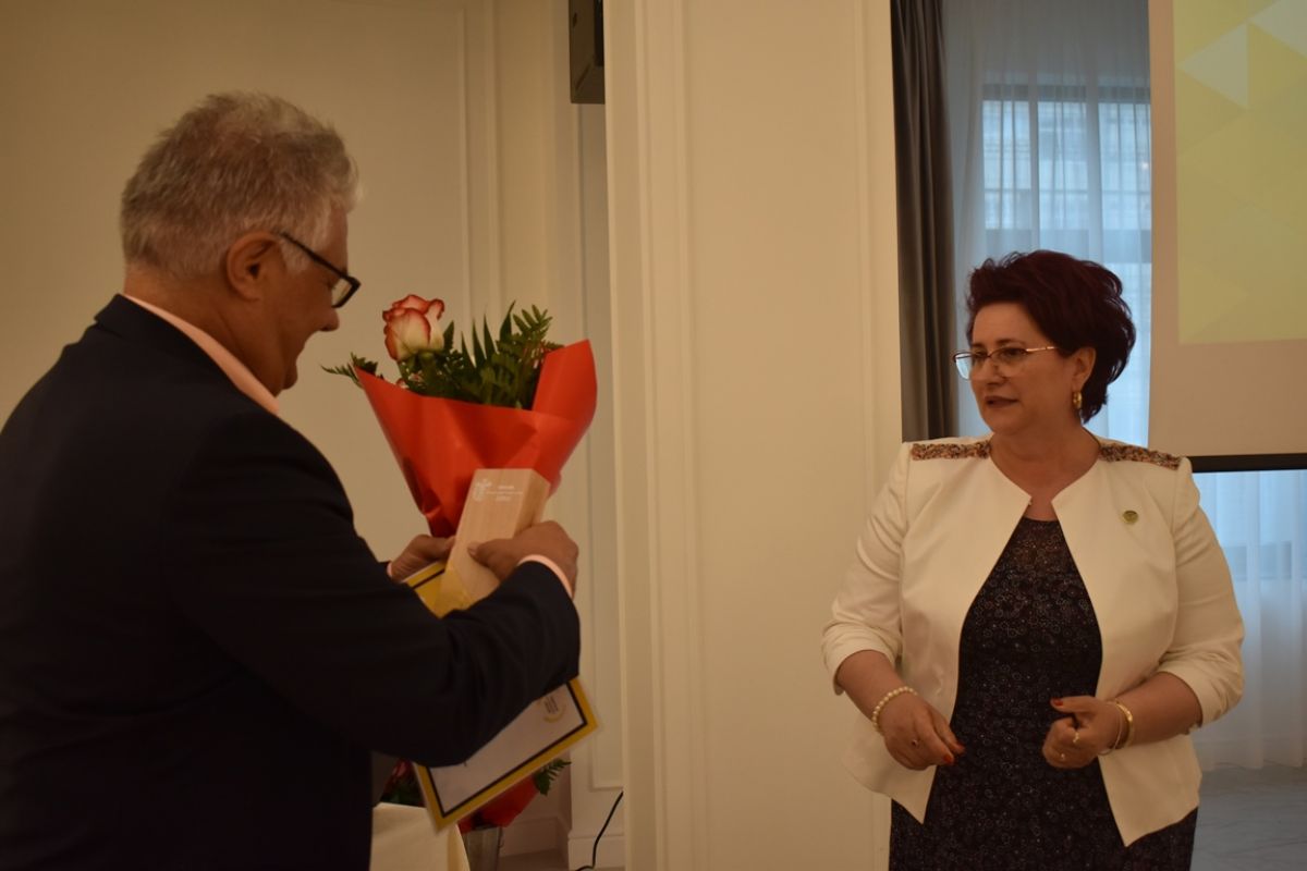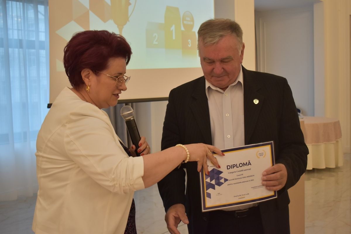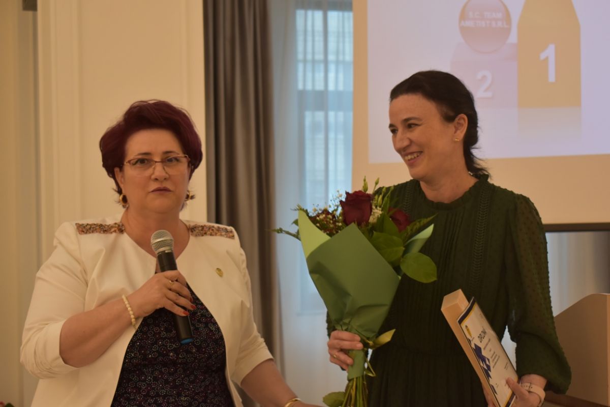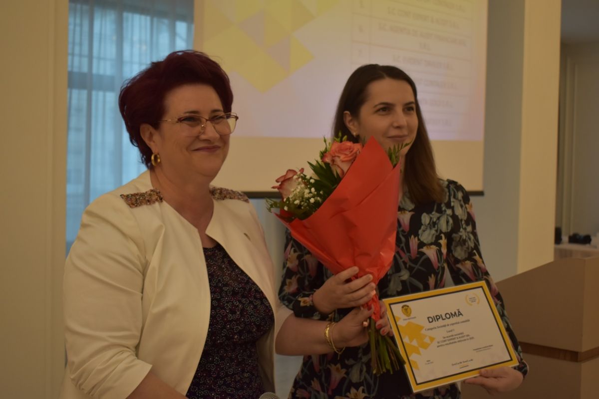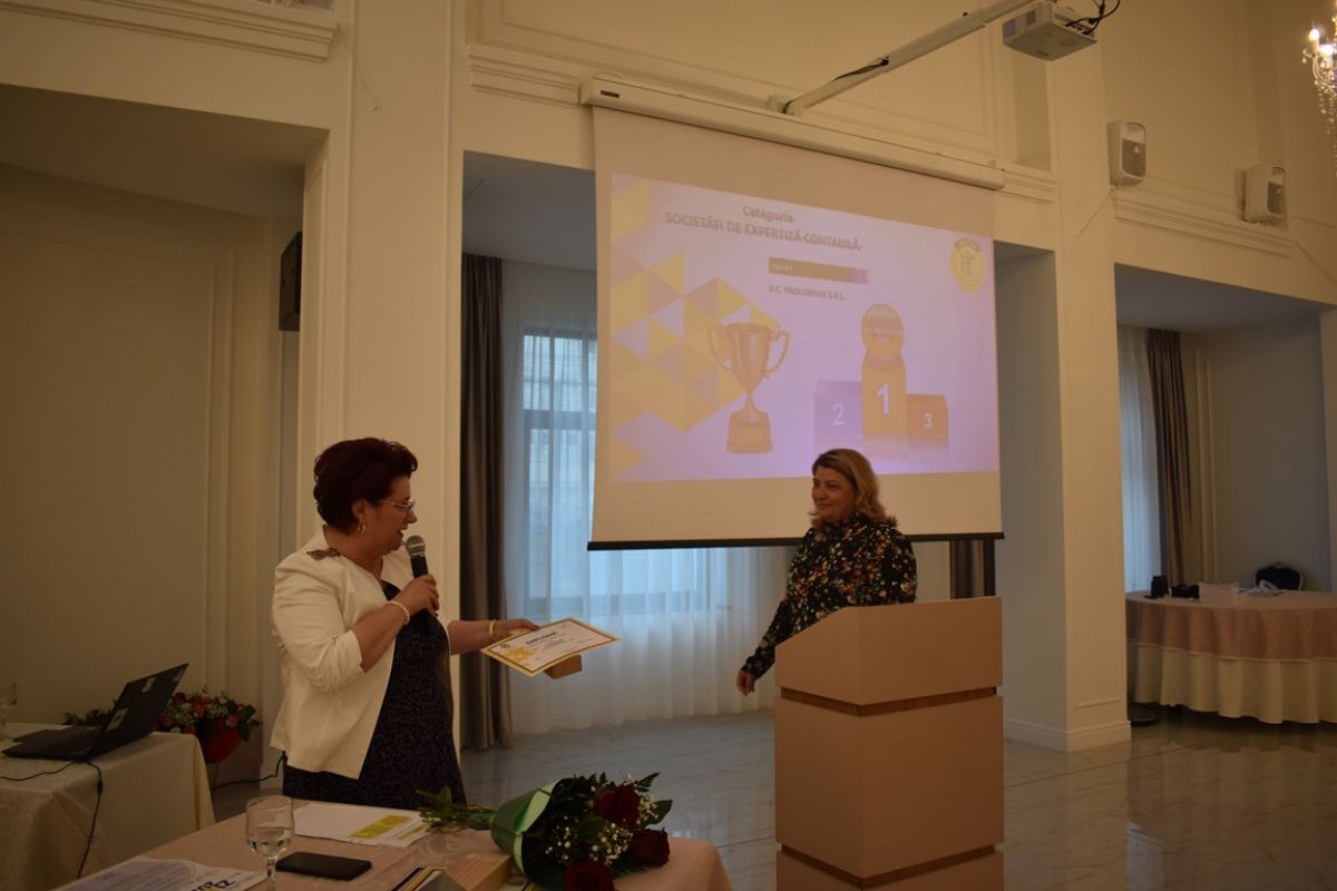 Cum a fost amfitrionul manifestării, în momentele multiplei premieri, în fața asistenței a venit expertul contabil Mihai Olteanu pentru a-i înmâna diploma ori angajate de la cele două firme pentru a primi distincțiile.