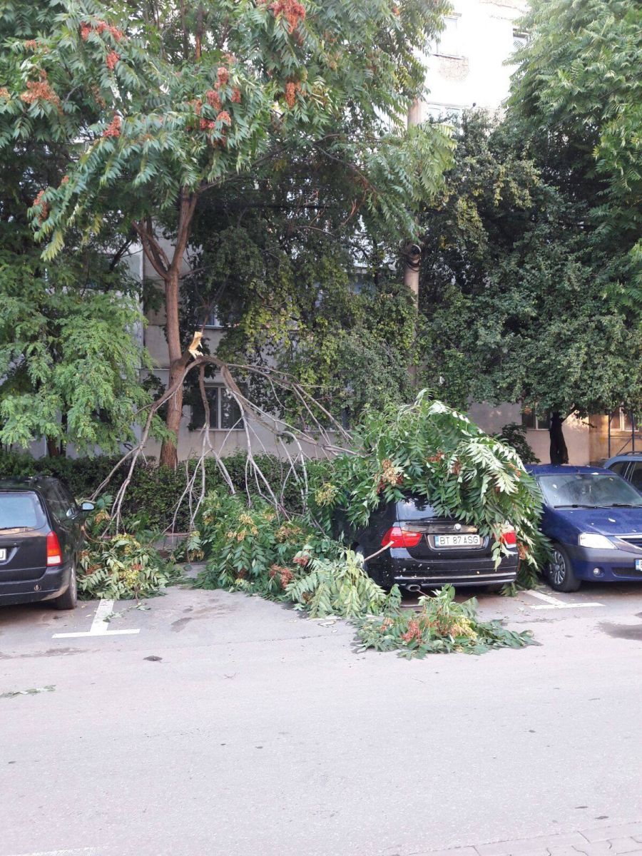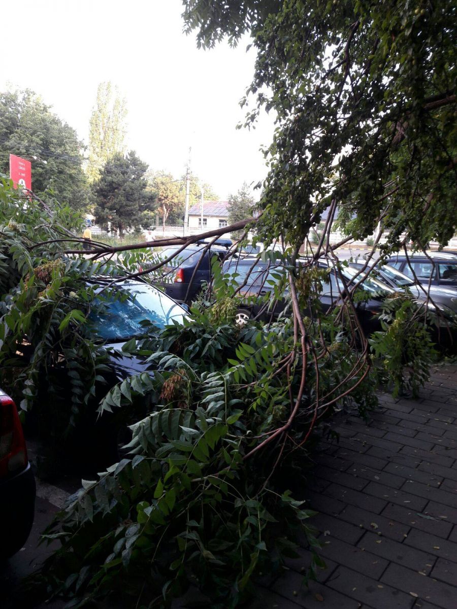 Un copac s-a desprins din rădăcină și a căzut peste mai multe mașini ce erau parcate în zonă.
