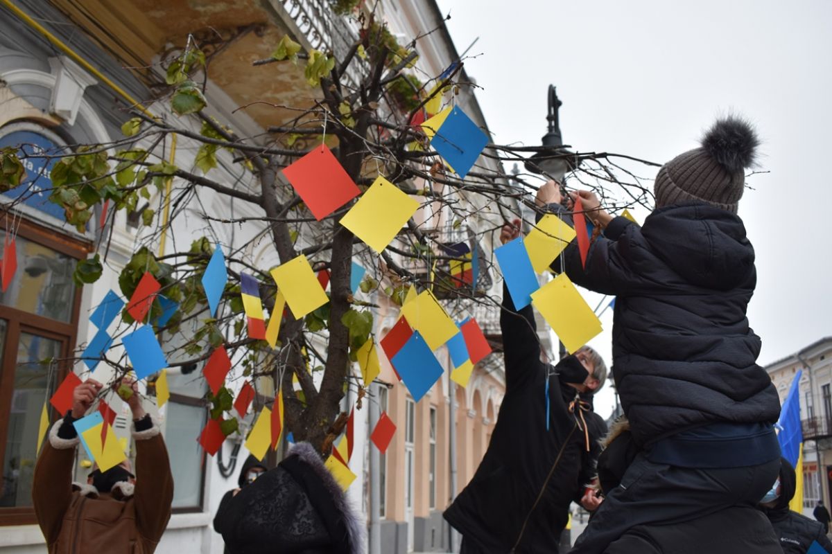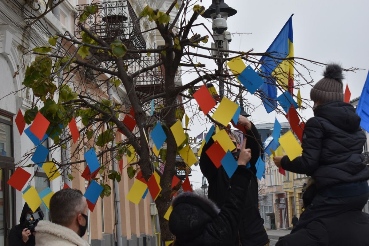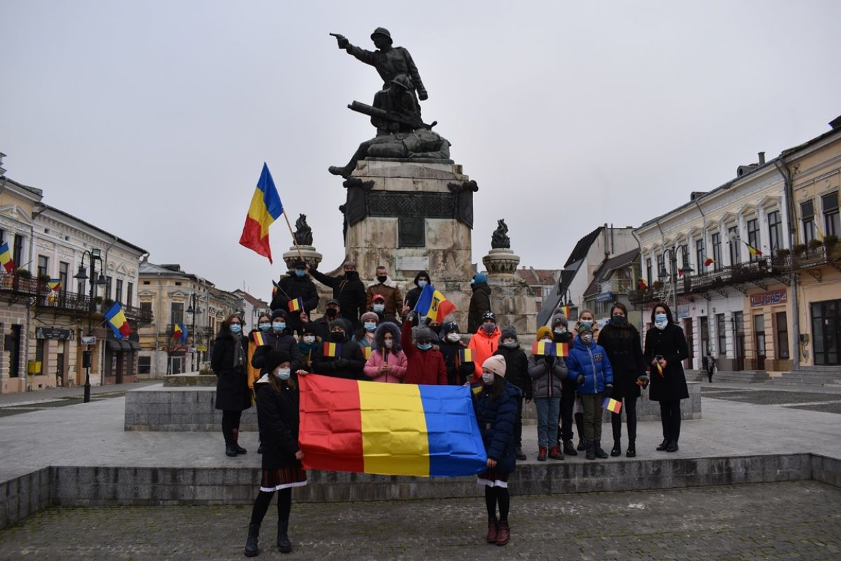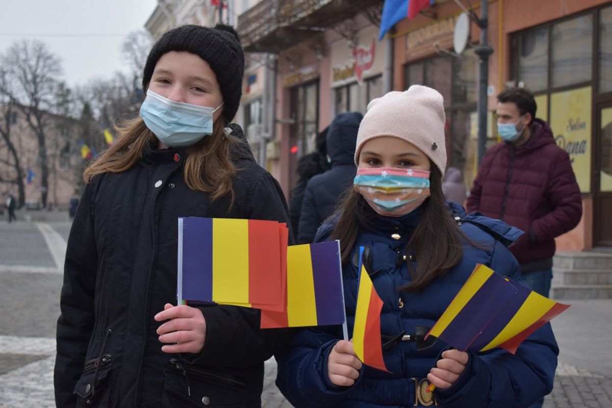 În jur de 25 de copii s-a strâns în jurul orei 10:00 lângă Biserica Uspenia, iar apoi s-au deplasat în Piața 1 Decembrie 1918, unde au îmbrăcat un copac în straie tricolore.
