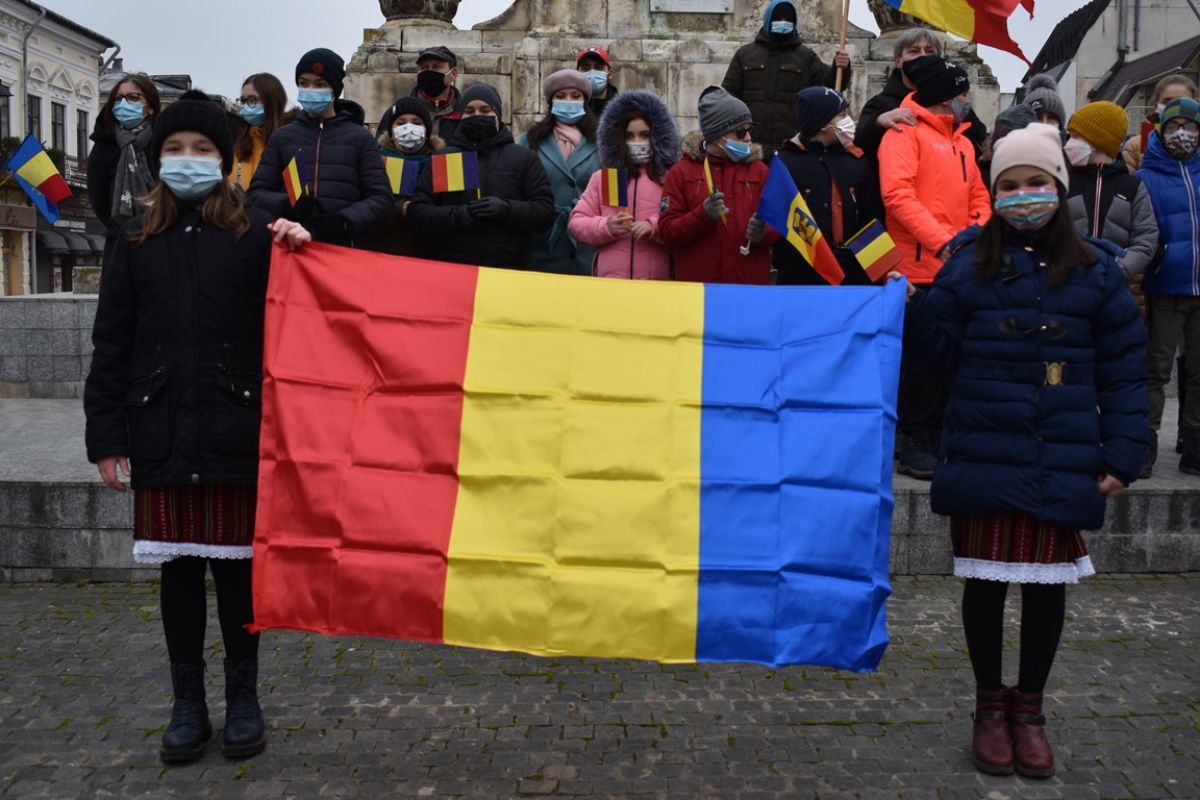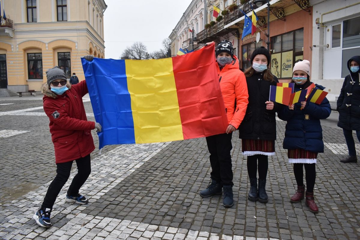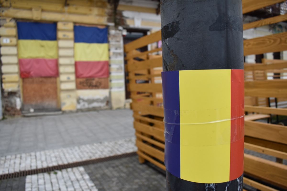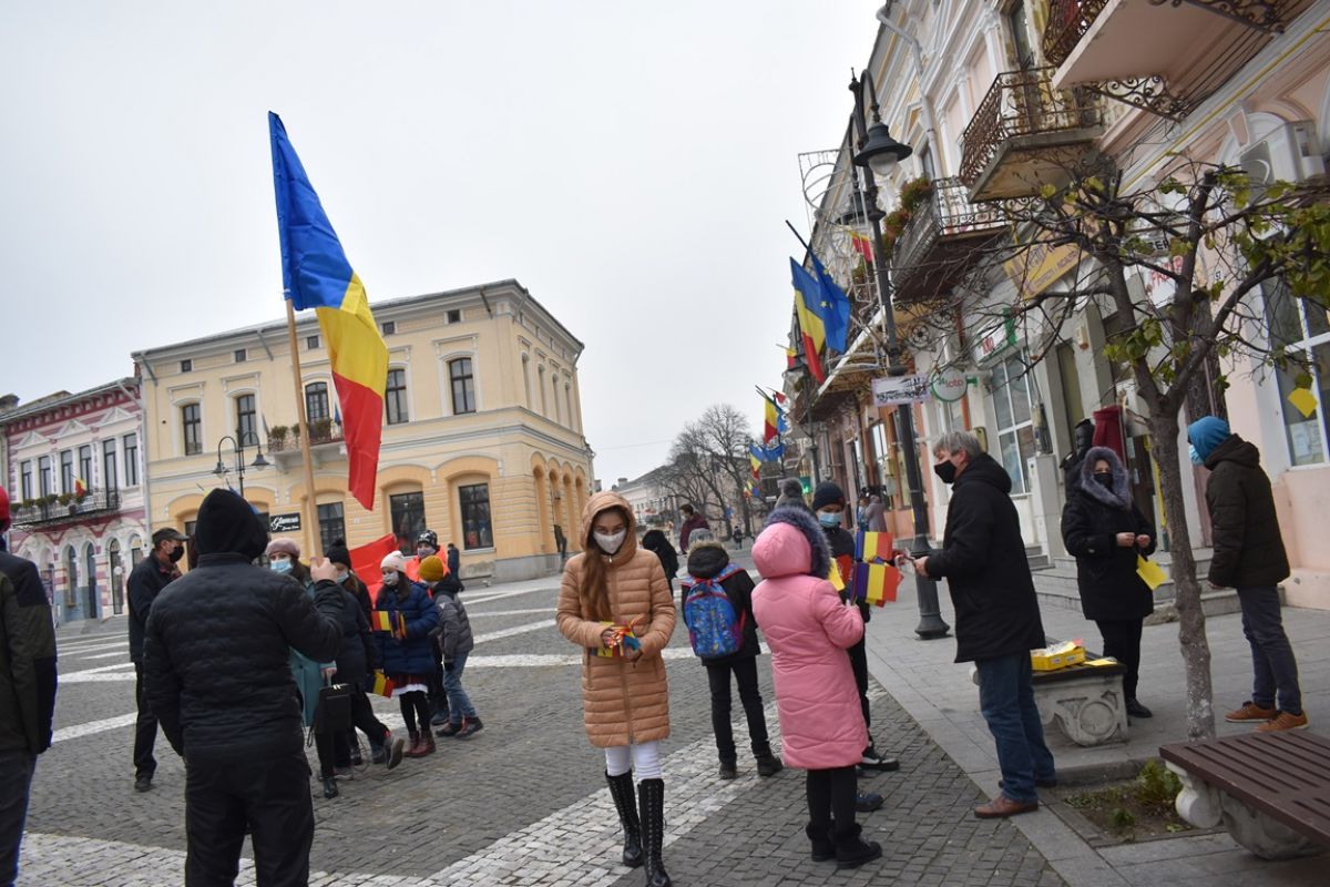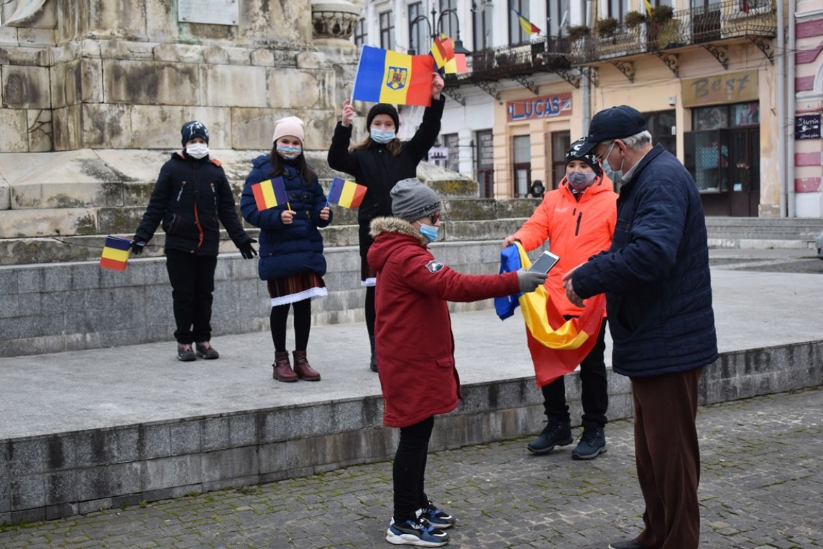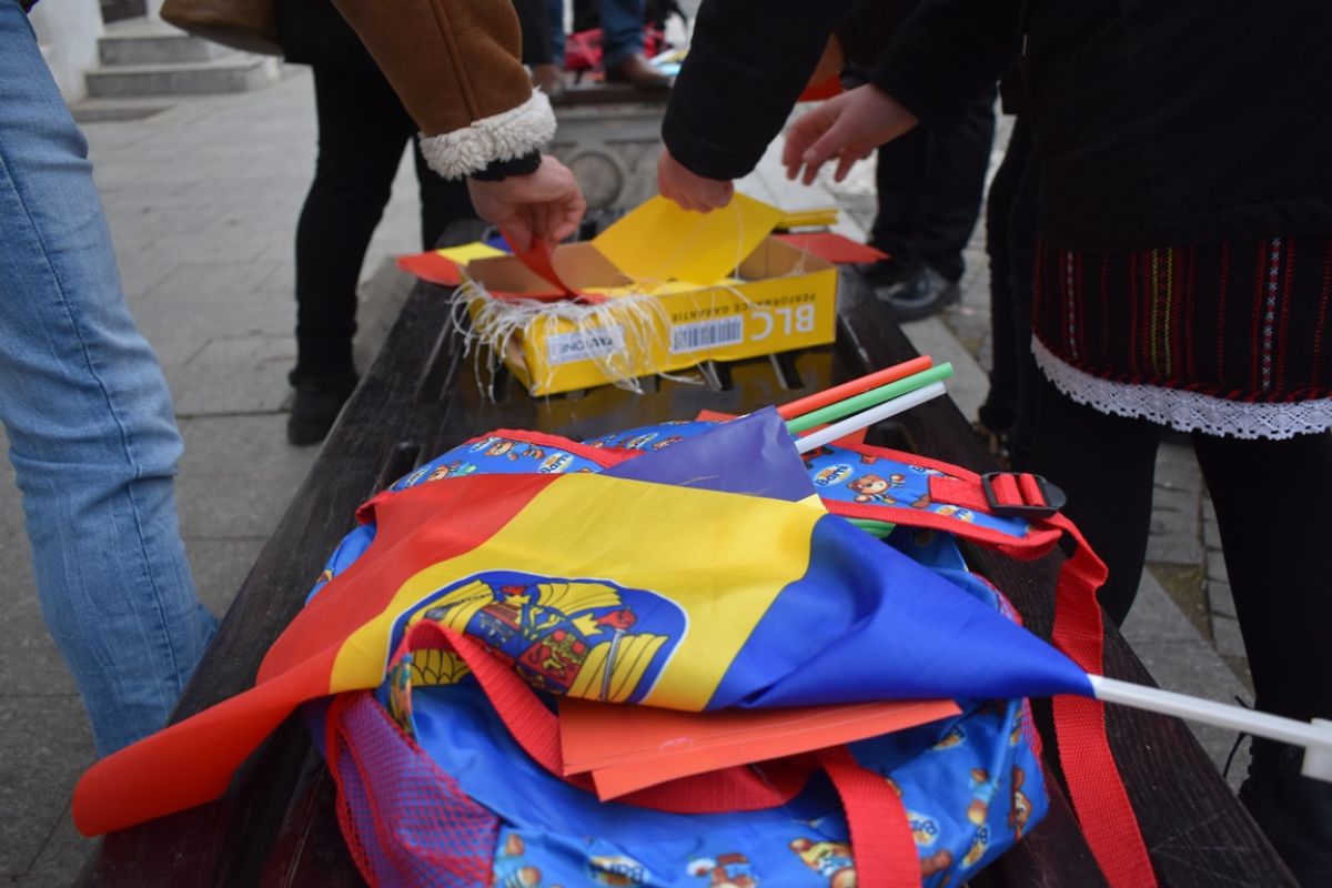 În cadrul manifestării, elevii au lipit și autocolante tricolore pe stâlpii de iluminat din zona istorică a orașului.