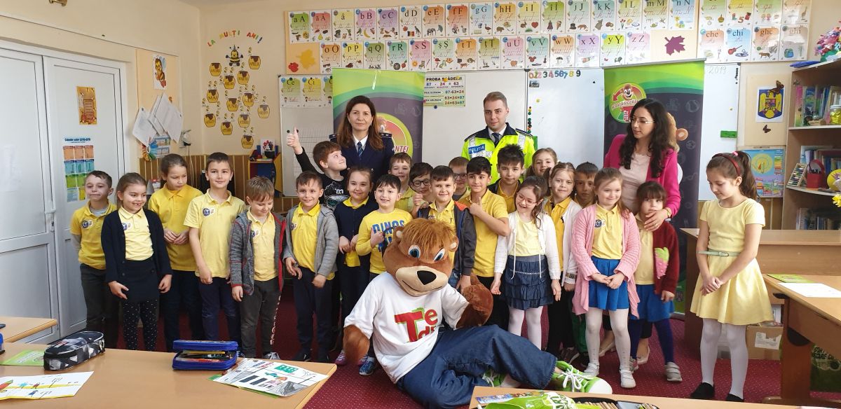 În data de 26 martie, elevii clasei întâi de la Liceul Pedagogic N. Iorga – clasa prof. Înv. Ohaci Laura au fost premiați de Ursulețul Tedi pentru implicarea în activitățile derulate până în prezent. Mascota programului s-a aflat în mijlocul copiilor și le-a fost alături când aceștia au primit informaţii privind siguranţa personală acasă, pe stradă şi în locurile de agrement.