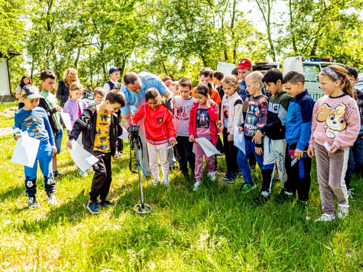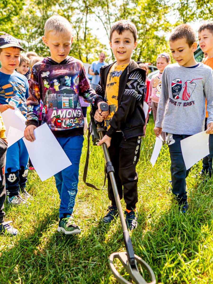 Una dintre atracții a fost detectorul de metale, pe care copiii l-au folosit pentru a identifica obiecte necesare în rezolvarea scenariului stabilit de polițiști.