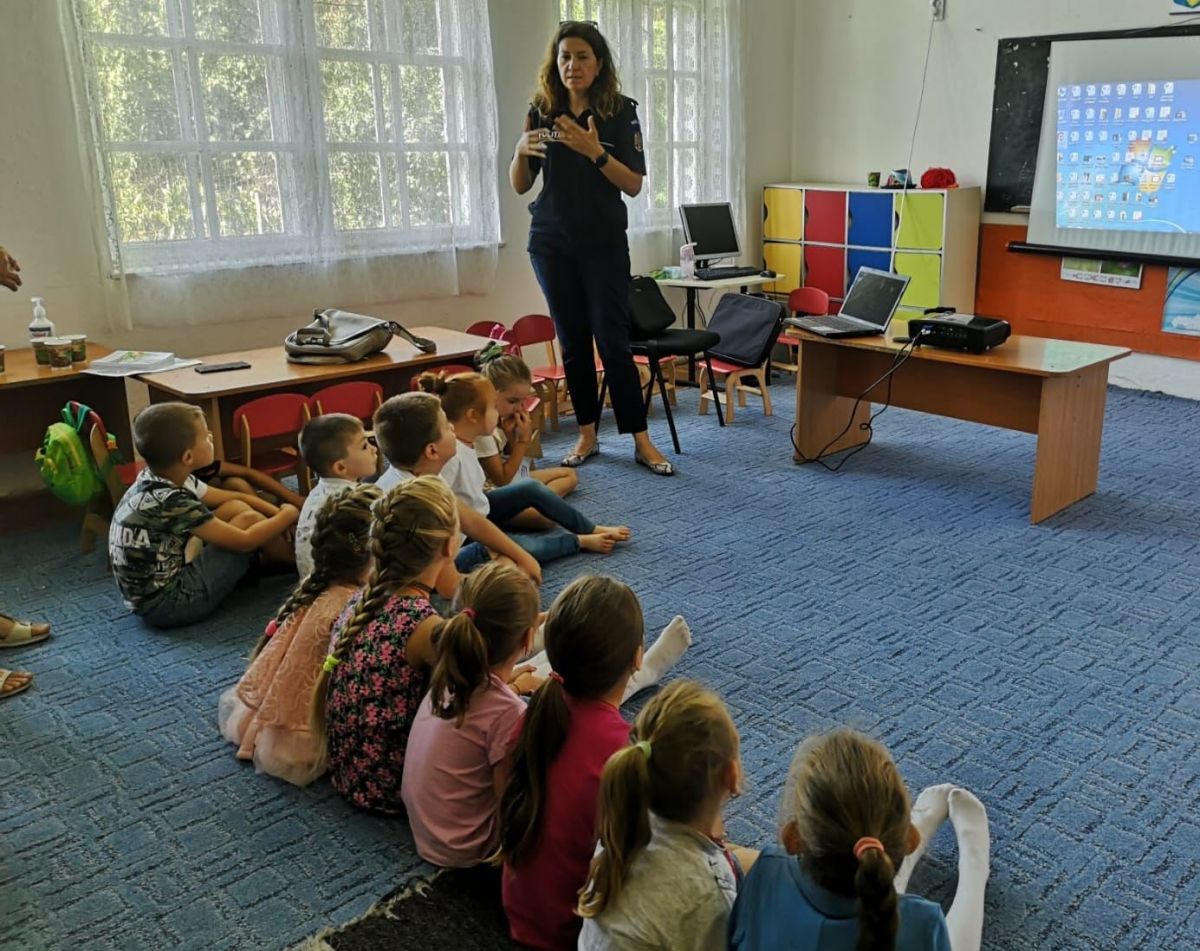Copiilor li s-au prezentat elemente de educație rutieră, modul de deplasare pe drumul public în cazul în care nu există trotuar, asigurarea înainte de angajare în traversare .