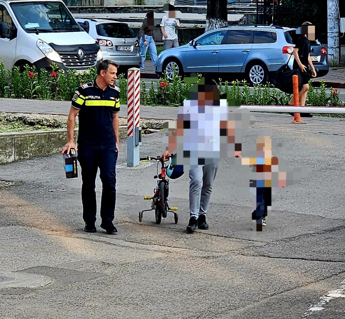 Polițistul l-a liniștit pe minor și a reușit, prin dialog, să-i câștige încrederea și să obțină informații privind identitatea și locul în care ar putea fi părinții săi.