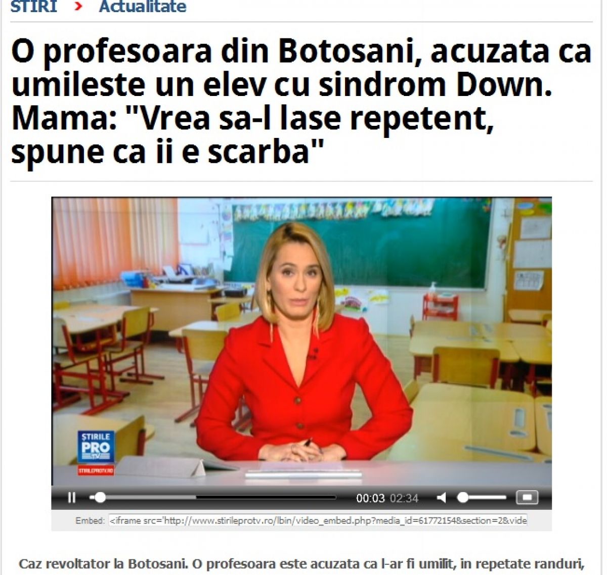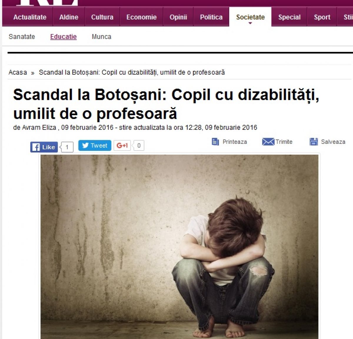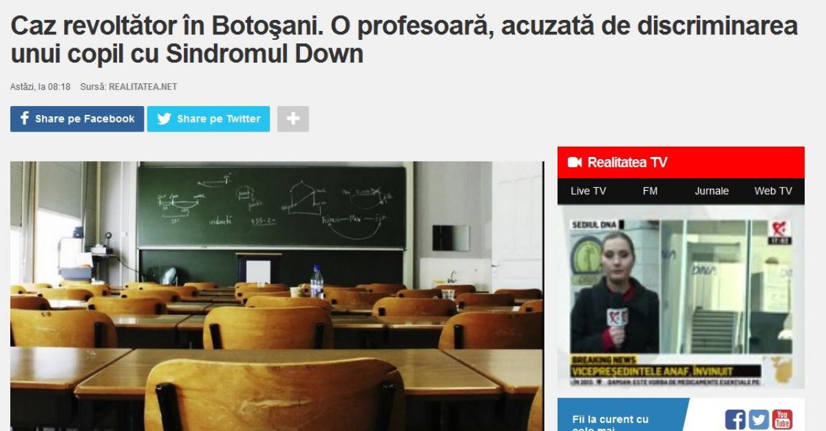 Scandal național, revoltă, acuzații de discriminare, cam așa poate fi descrisă situația de la Școala numărul 13 din Botoșani, acolo unde un copil pe nume Andrei, care suferă de sindromul Down, ar fi fost supus unui tratament umilitor din partea profesoarei de geografie.