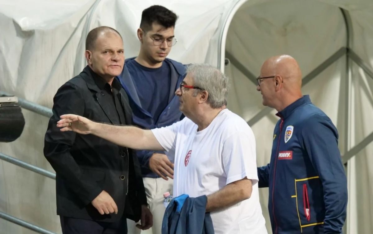 Înaintea confruntării terminate cu scorul de 0 - 0, fostul președinte al FC Botoșani s-a întreținut cu președintele FRF, Răzvan Burleanu și președintele comisiei tehnice, Mihai Stoichiță.
