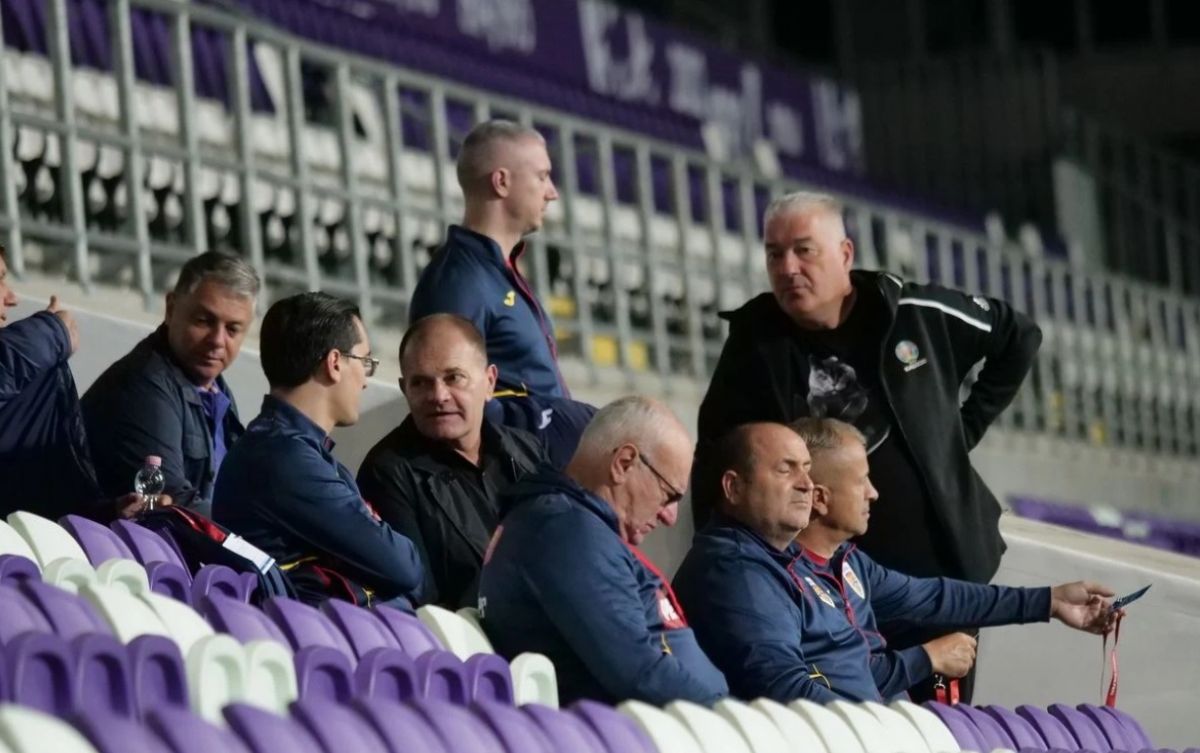Pe stadionul lui Ujpest din Budapesta, la Belarus - România au asistat doar 70 de oameni, în afara jurnaliștilor, câte 35 de pentru fiecare țară. Din delegația României a făcut parte și Cornel Șfaițer, președintele lui Poli Iași, nelipsit din deplasările primei reprezentative.