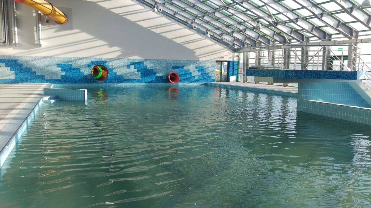 Și aici, probabil până la finele anului în curs, vor intra copii și adulți pentru a vedea cum se comportă acest bazin interior.