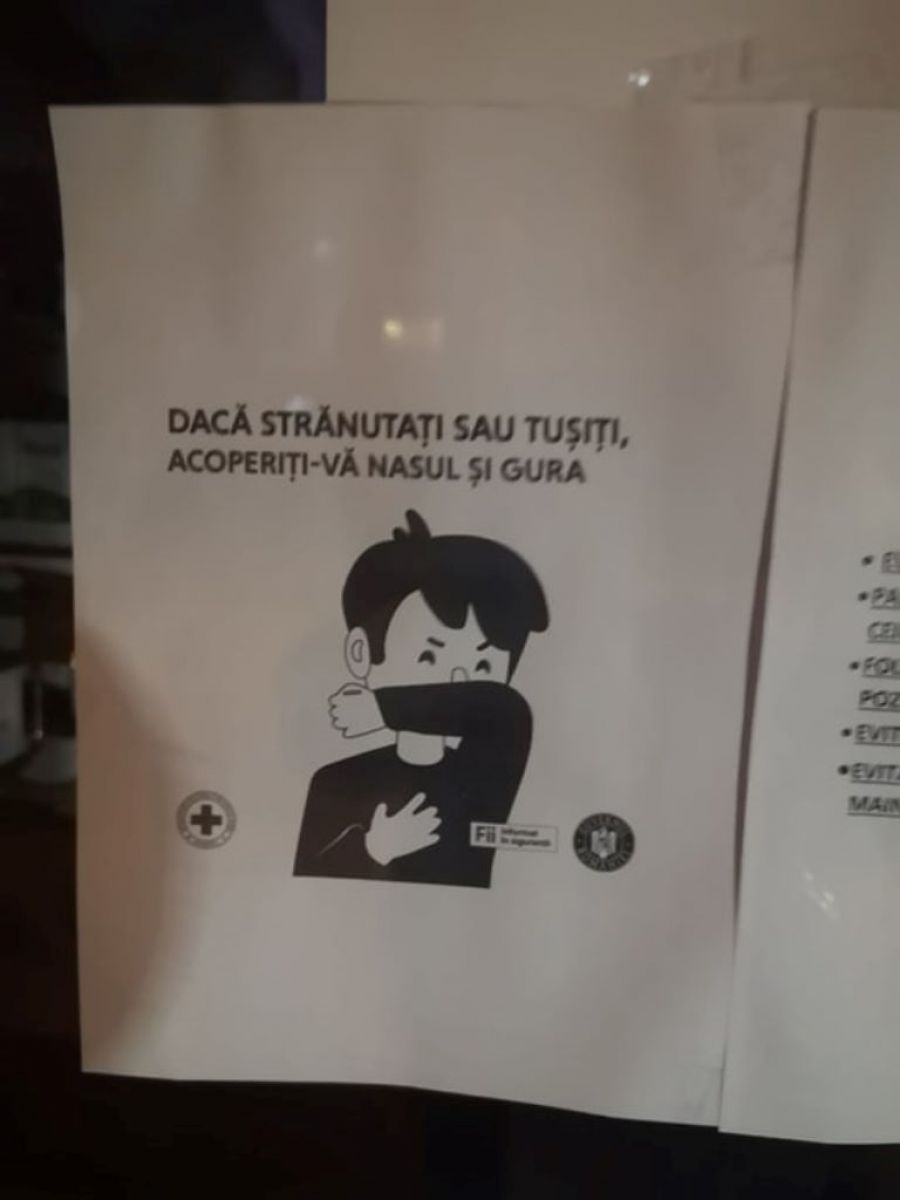 În fine, toate magazinele aveau o mulțime de afișe despre cum să se comporte lumea în contextul pandemiei cu Covid-19, inclusiv ”dacă strănutați sau tușiți, acoperiți-vă nasul și gura”.