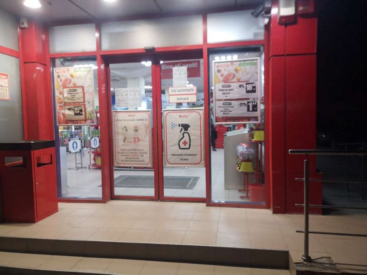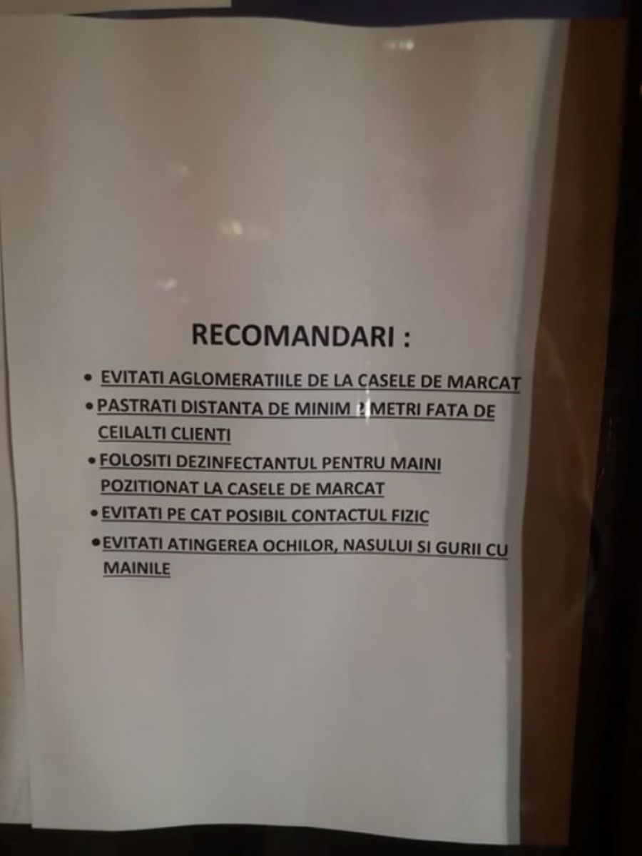 ”Dragi clienți, din dorința de a servi cât mai mulți dintre dumneavoastră, produsele din categoria alimente de bază, pot fi cumpărate în cantități de maxim 6 bucăți/persoană. Vă mulțumim pentru înțelegere”.