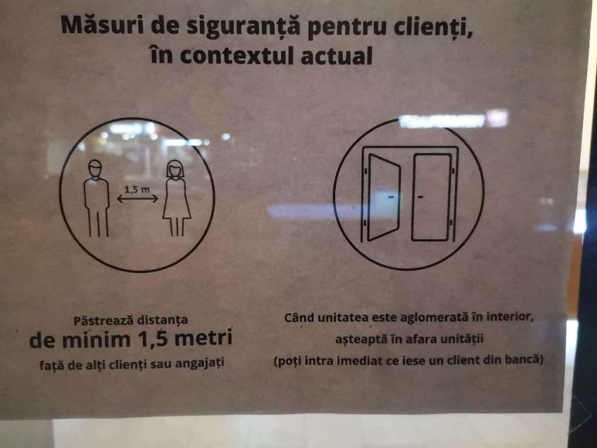 - În agenție să păstrați o distanță de cel puțin 1,5 metri față de cei din jurul dumneavoastră, fie că sunt clienți sau personal al băncii.